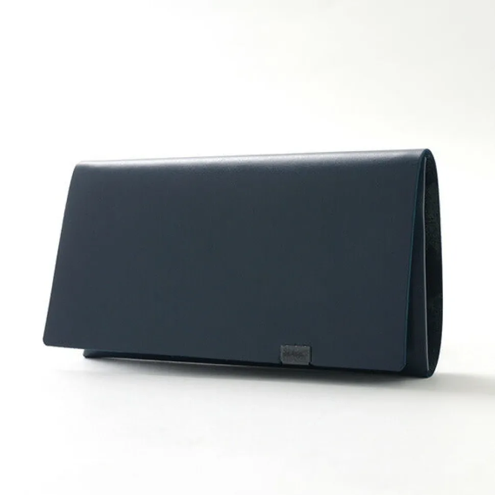 This minimalist long wallet is formed by folding a single piece of leather without sewing and fastening it at a single point. The clean appearance of the cover, which wraps around the body, and the design that reveals a foil-stamped pattern inside when it is opened are both gorgeous and elegant, and can be enjoyed by both men and women.