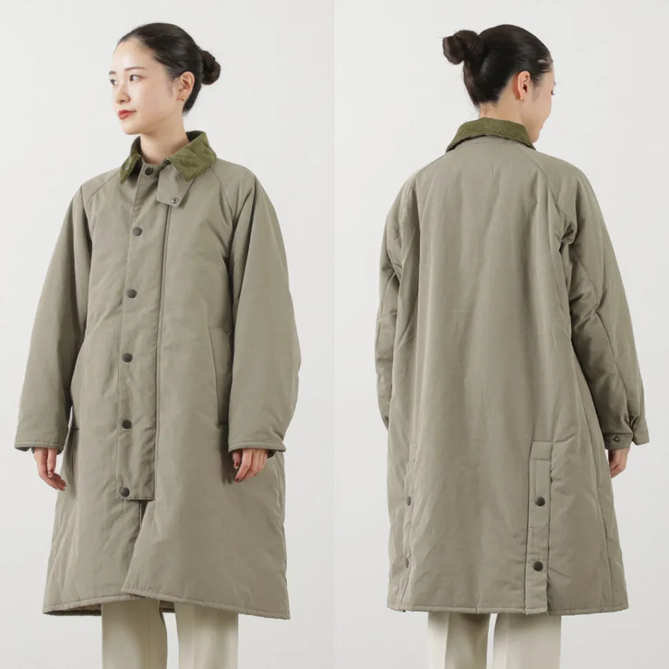 This mid-length coat is a knee-length version of the classic “Burghley” model that represents BARBOUR. The luxurious appearance of the grosgrain fabric with a glossy sheen, and the inclusion of padding with excellent heat retention properties, make it the perfect piece for full-blown winter.