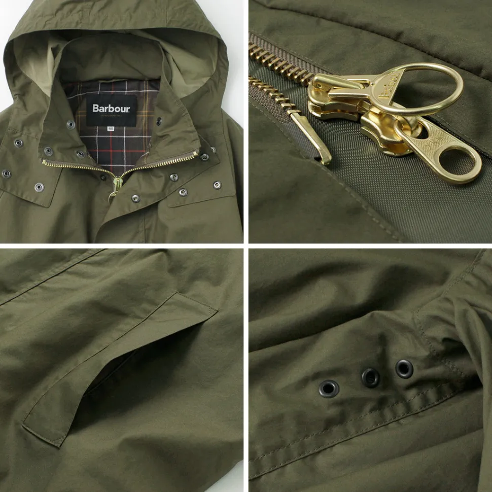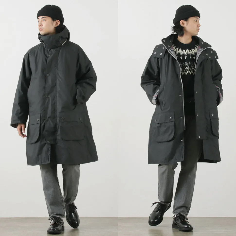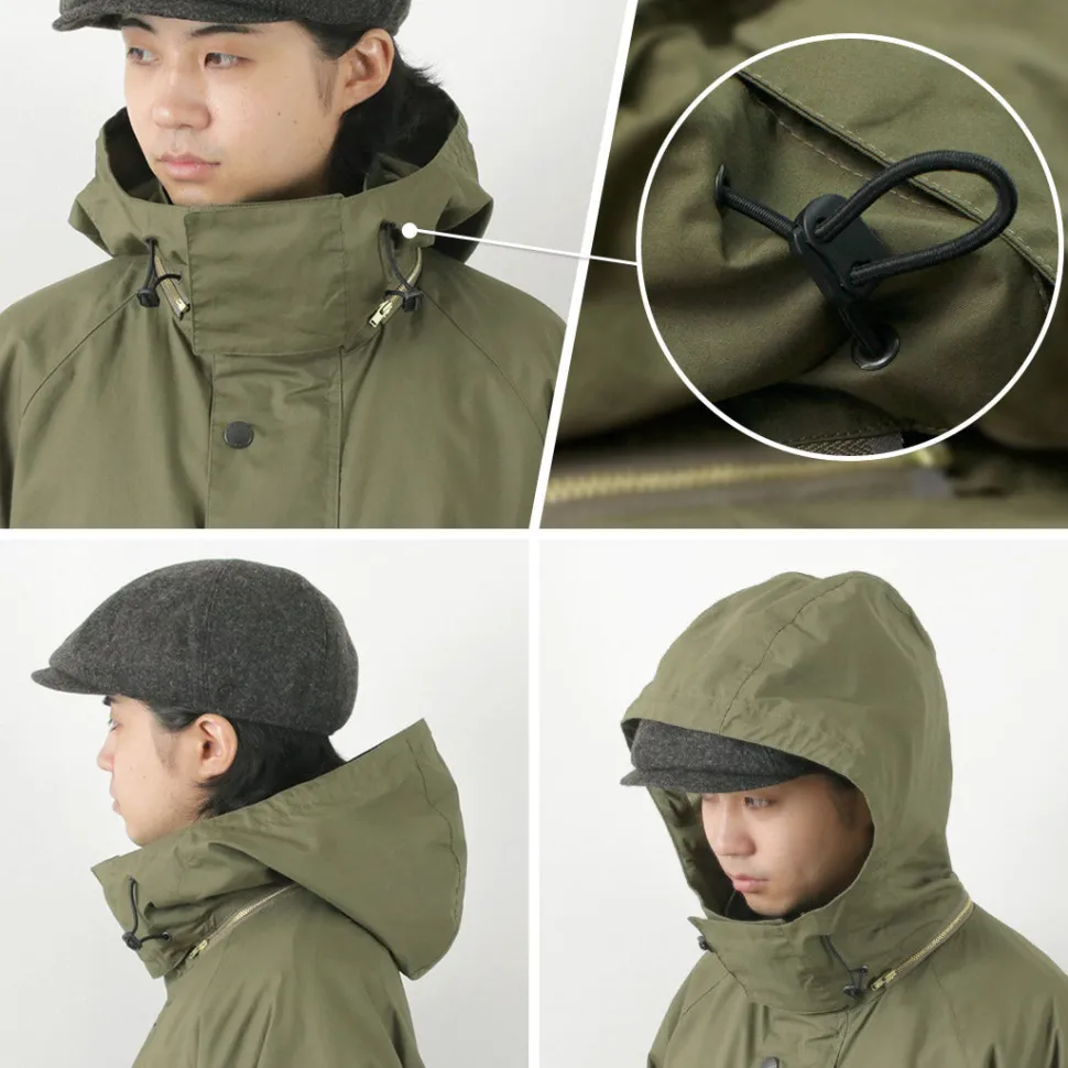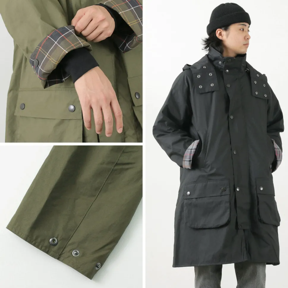 This model is a longer version of BARBOUR’s iconic classic model, the BIDAIL, with a mountain parka-like hood around the collar.