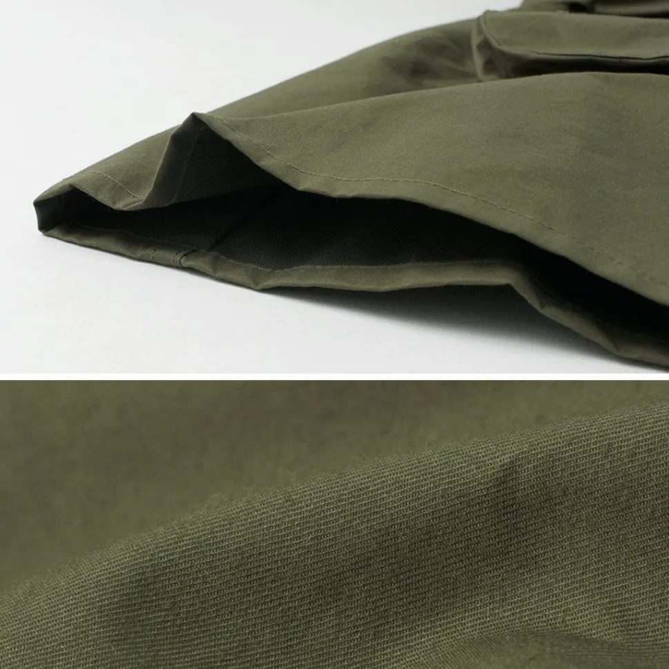 The outer fabric is made of non-oil twill. It has a moderately shiny look and is tough and sturdy enough to be used hard. Because it is a non-oil fabric, it can be worn comfortably without worrying about odor or stickiness.