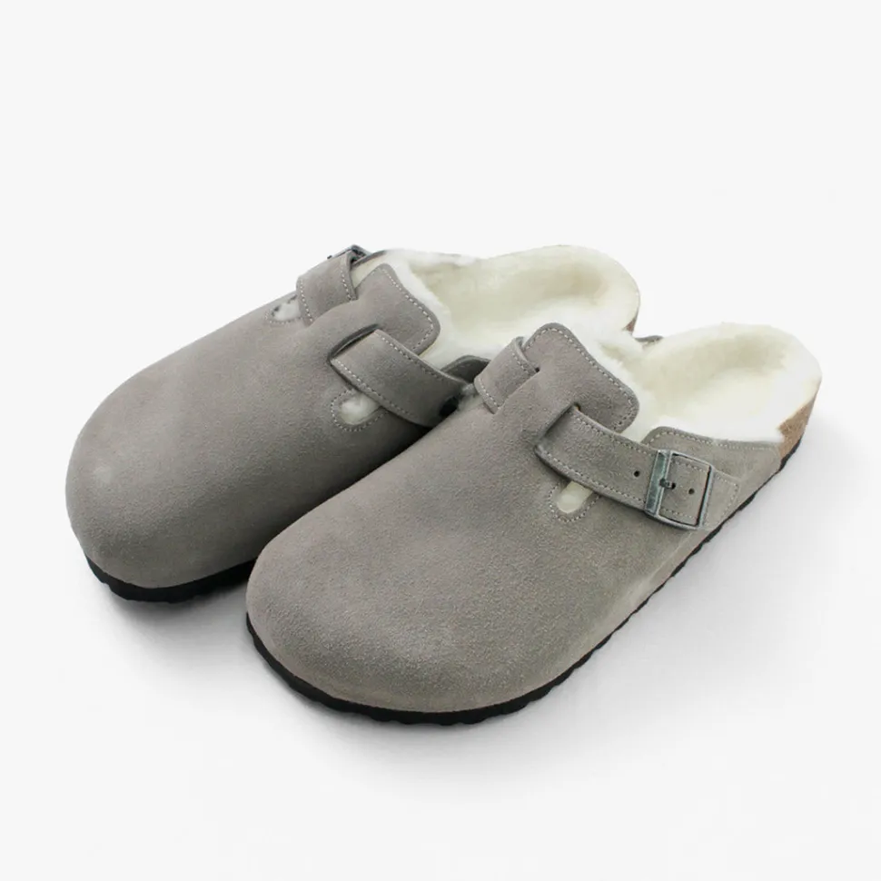 BIRKENSTOCK / Boston Shearling Suede Leather Fur Sandals