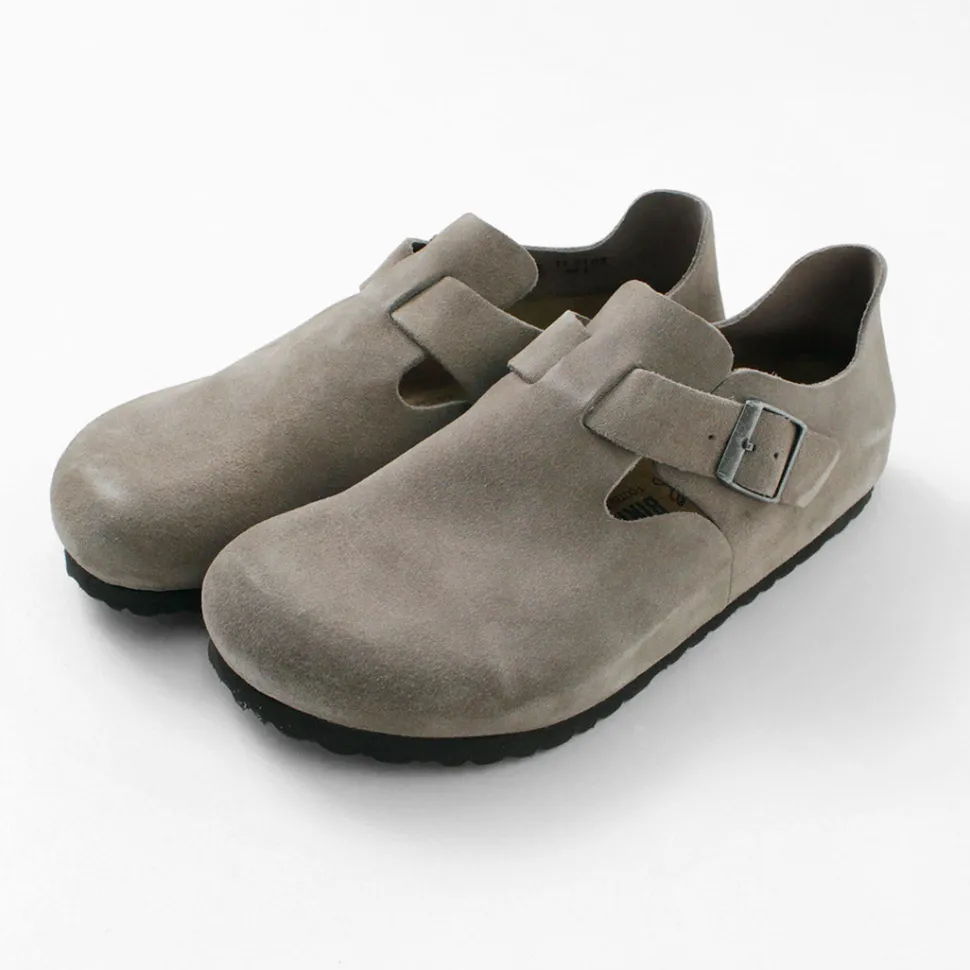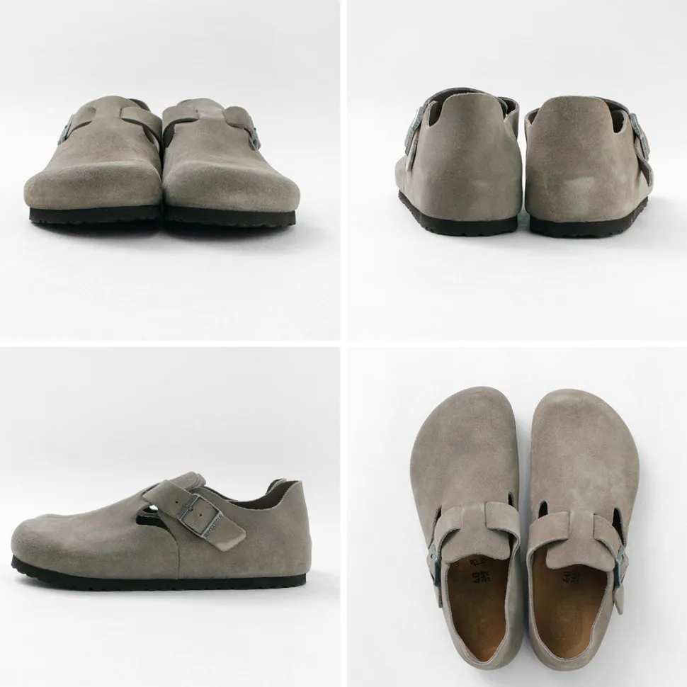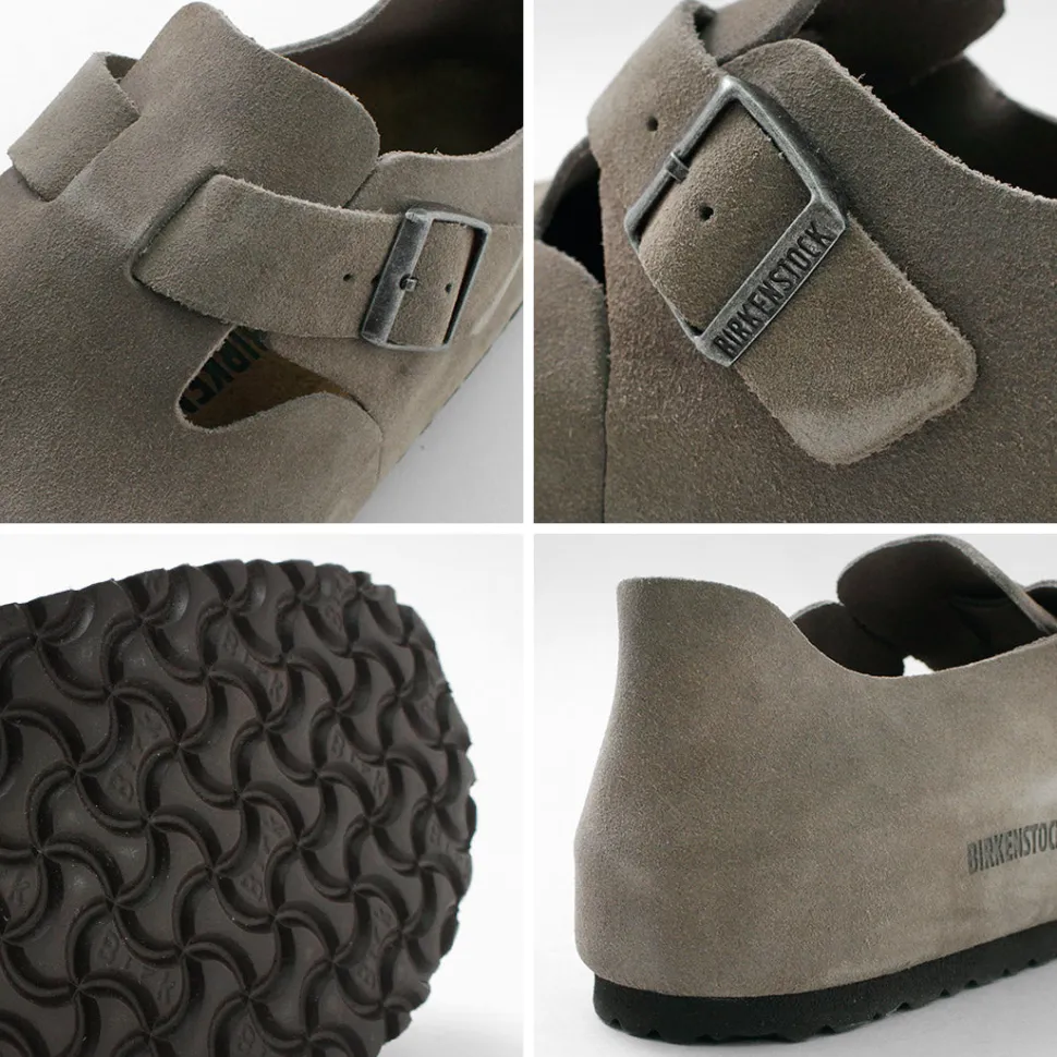 BIRKENSTOCK introduces “London”, a popular standard model that has become easier to wear. The “Boston” clog sandal has been updated with a design that improves the sense of hold. A sense of security that the foot does not slip out easily has been added to the comfortable wearing feeling. The upper is made of high-quality velour leather (suede), creating the perfect atmosphere for an adult casual style. The well-balanced design matches any season, making it a highly versatile pair.