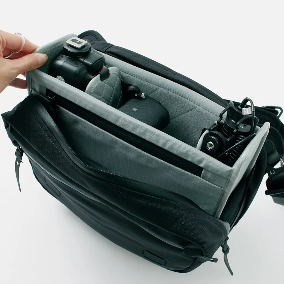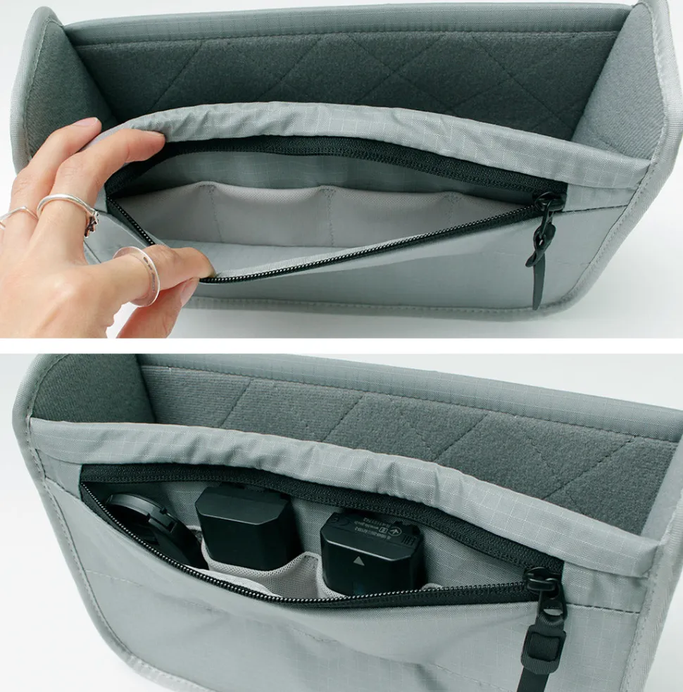 For the outer fabric, they use ripstop material similar to the lining of Grip Sling, known for its tear strength and abrasion resistance, ensuring long-term use with confidence. The interior is lined with a brushed nylon fabric featuring shock-absorbing padding to protect your valuable gear.