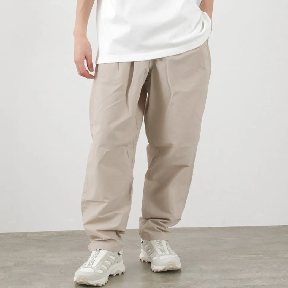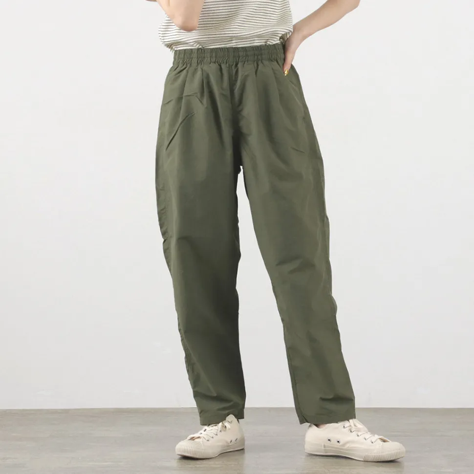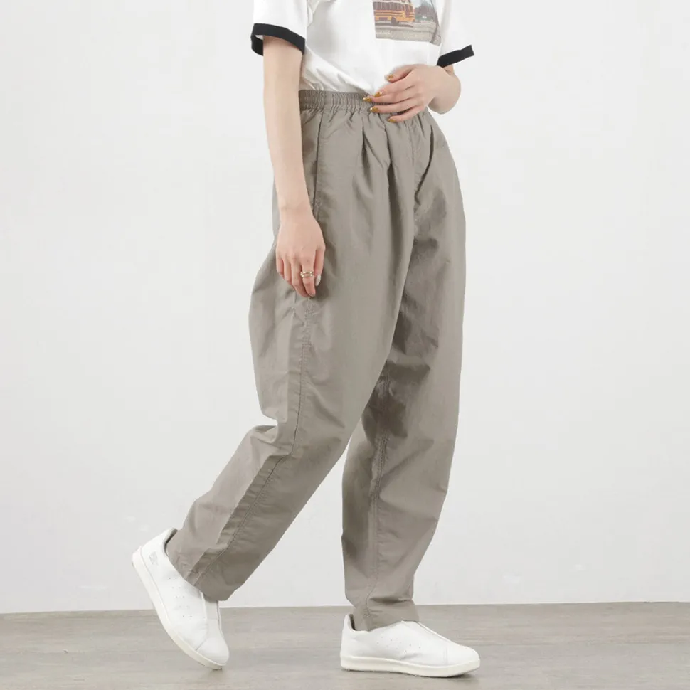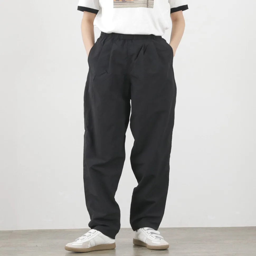 Track pants made of the functional material “Supplex Nylon”. With water repellency, quick-drying and UV-cut functions, these pants are comfortable to wear in spring and summer.