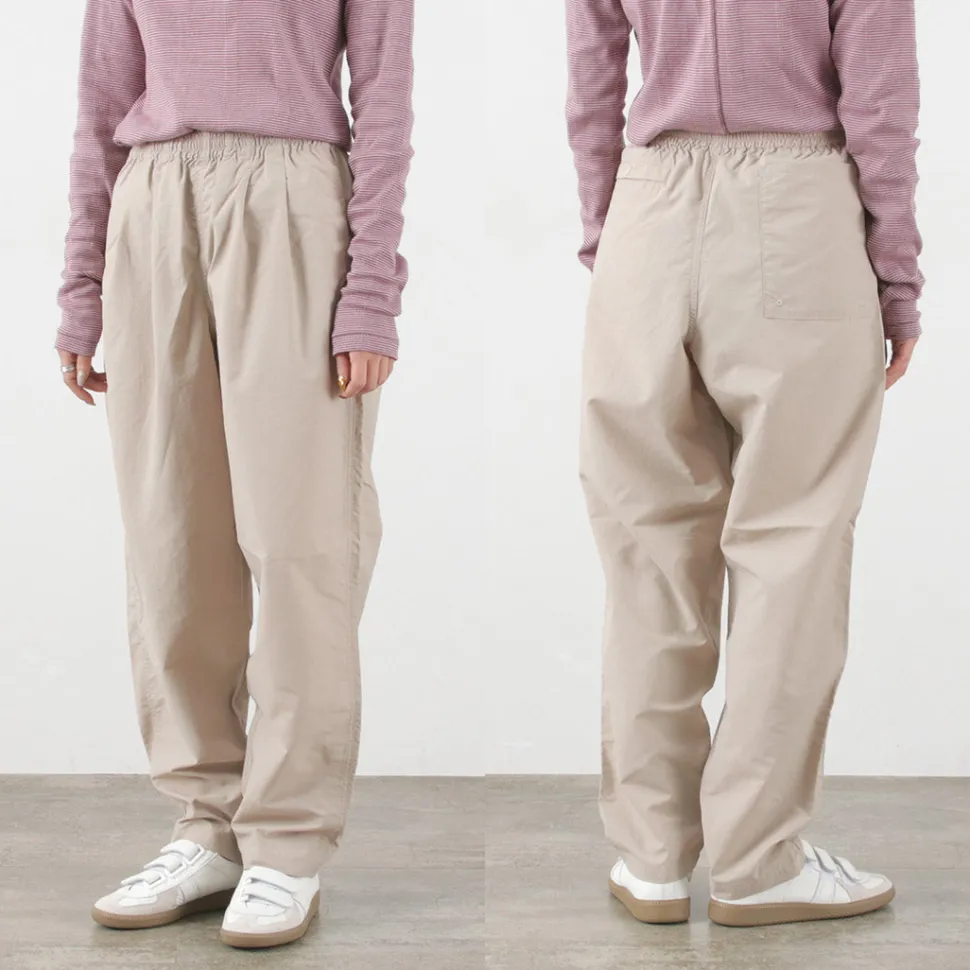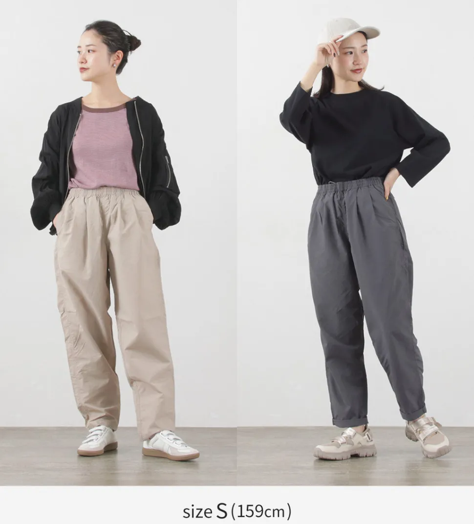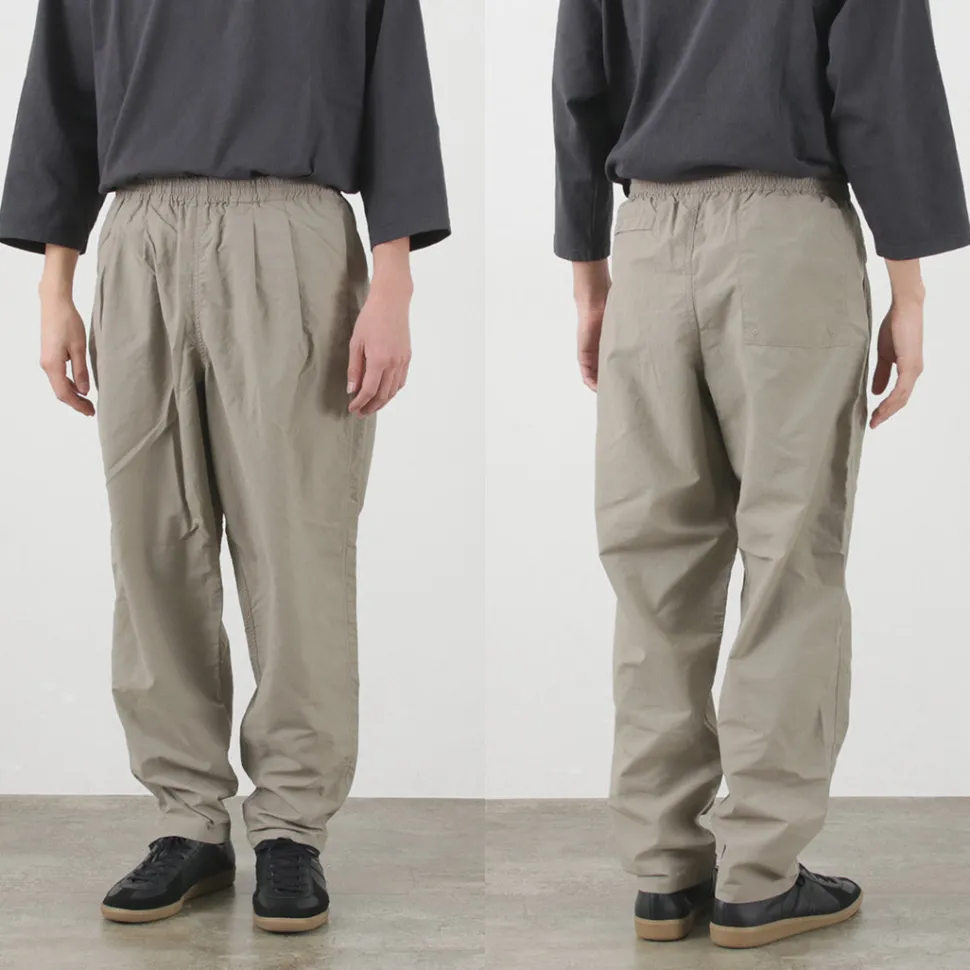 Track pants made of the functional material “Supplex Nylon”. With water repellency, quick-drying and UV-cut functions, these pants are comfortable to wear in spring and summer.