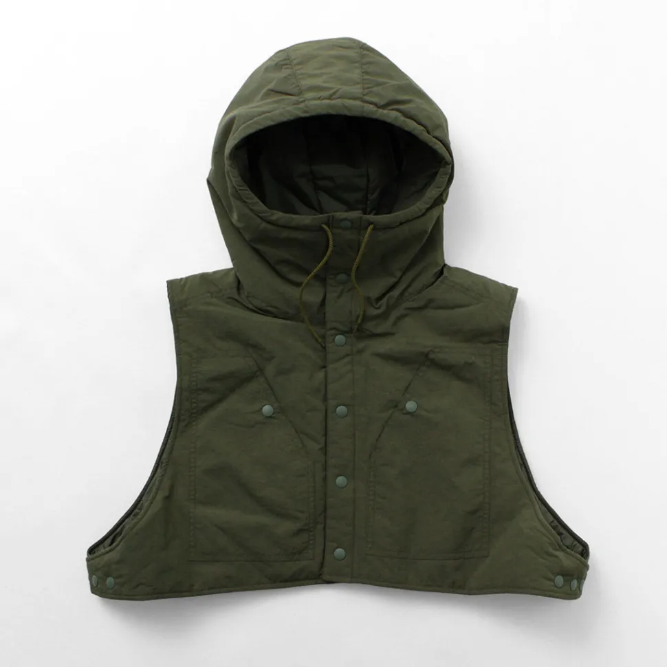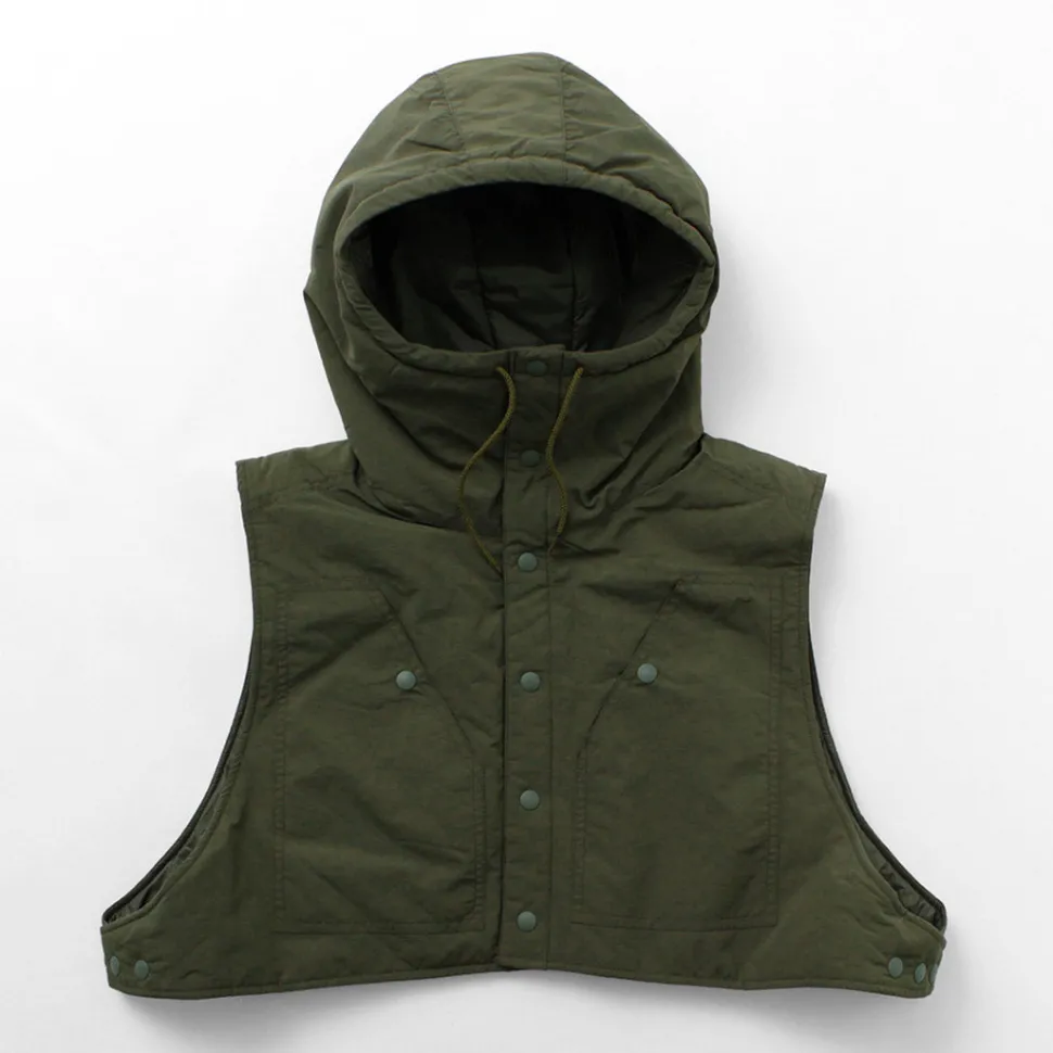 The shell is made of “Supplex Nylon” that excels in quick-drying and UV protection, the liner is made of “PERTEX QUANTUM” that is lightweight and highly durable, and the inside is made of “PRIMALOFT SILVER” that does not lose its heat retention ability even when wet. It is thin, yet durable, warm, and lightweight.
