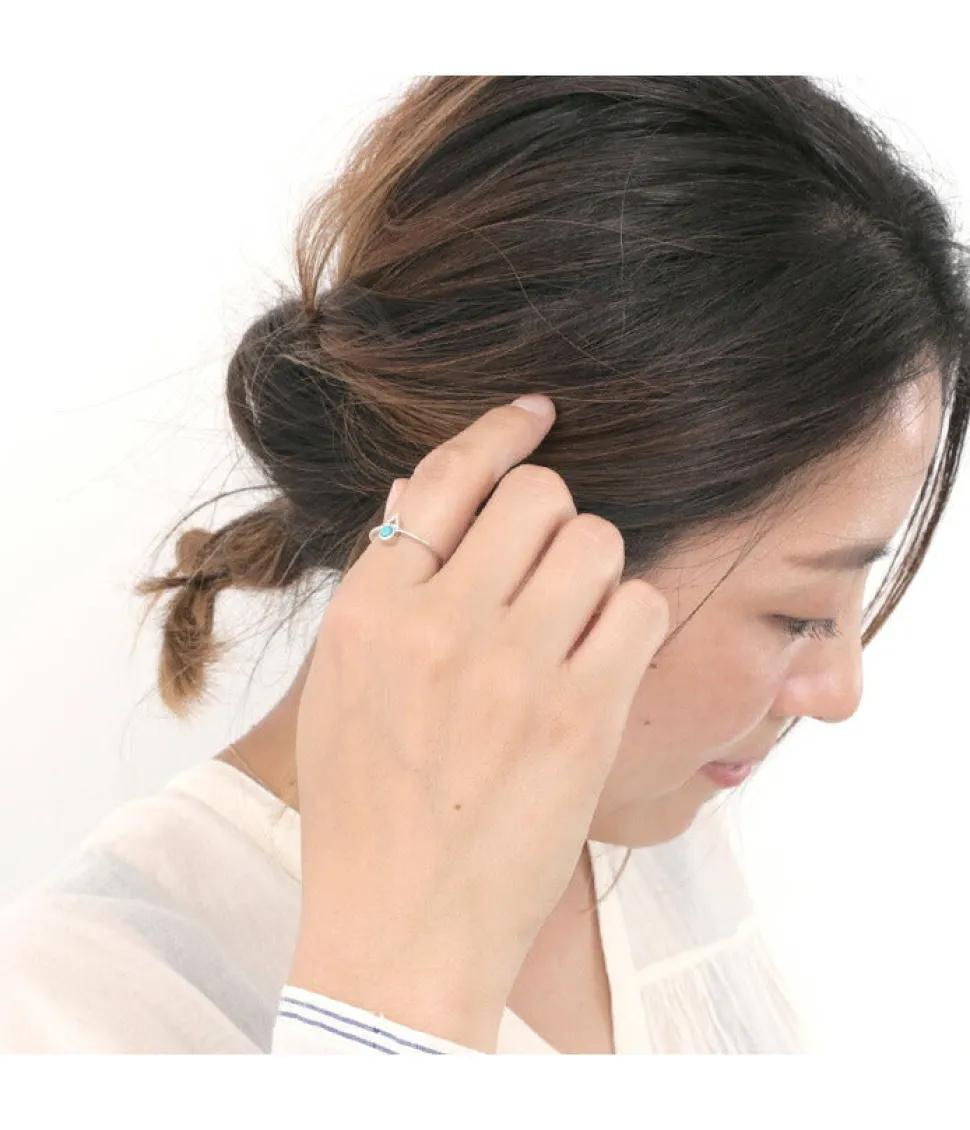 This ring has an ethnic feel with its design of triangles combined with bright and cool turquoise cut in a round shape. The sleek, ultra-thin arm is made of 925 silver. The design is small in size but has a good presence, giving it a different personality, while still being elegant enough to be worn by adults. It can be worn alone or in combination with other jewelry accessories designed by a jewelry accessory designer from Chiang Mai, Thailand under her own brand “Chalisa T.”. Chalisa T.” is a brand designed by a jewelry accessory designer from Chiang Mai, Thailand. Chalisa T. is an in-house brand designed by a jewelry accessory designer from Chiang Mai, Thailand, who incorporates vintage accessory design sources into modern designs. The series of rings created with a focus on slim and sleek designs can be enjoyed simply by itself, but they are also perfect for layering with other rings, which is also a trend.