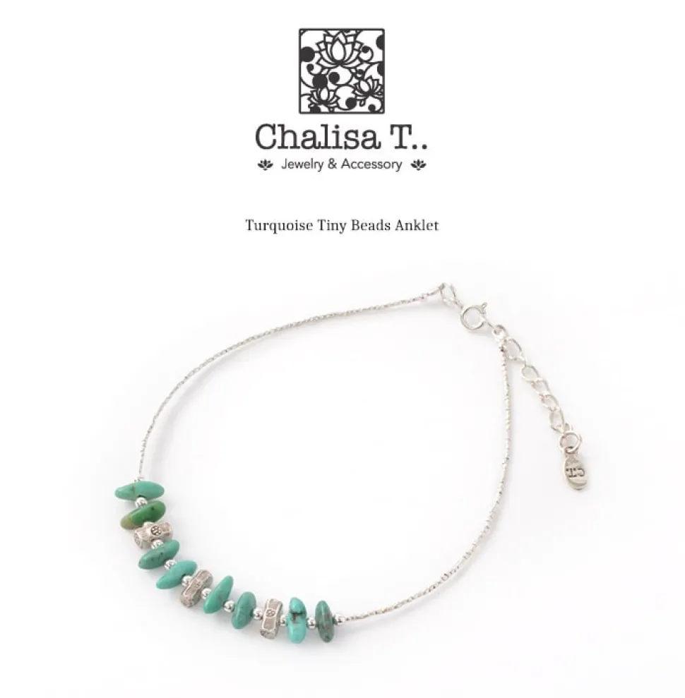 Turquoise and Karen silver beads make up the design of this anklet. The anklet is made with Karen Silver Tiny Beads instead of a chain, giving it a unique Karen Silver look.