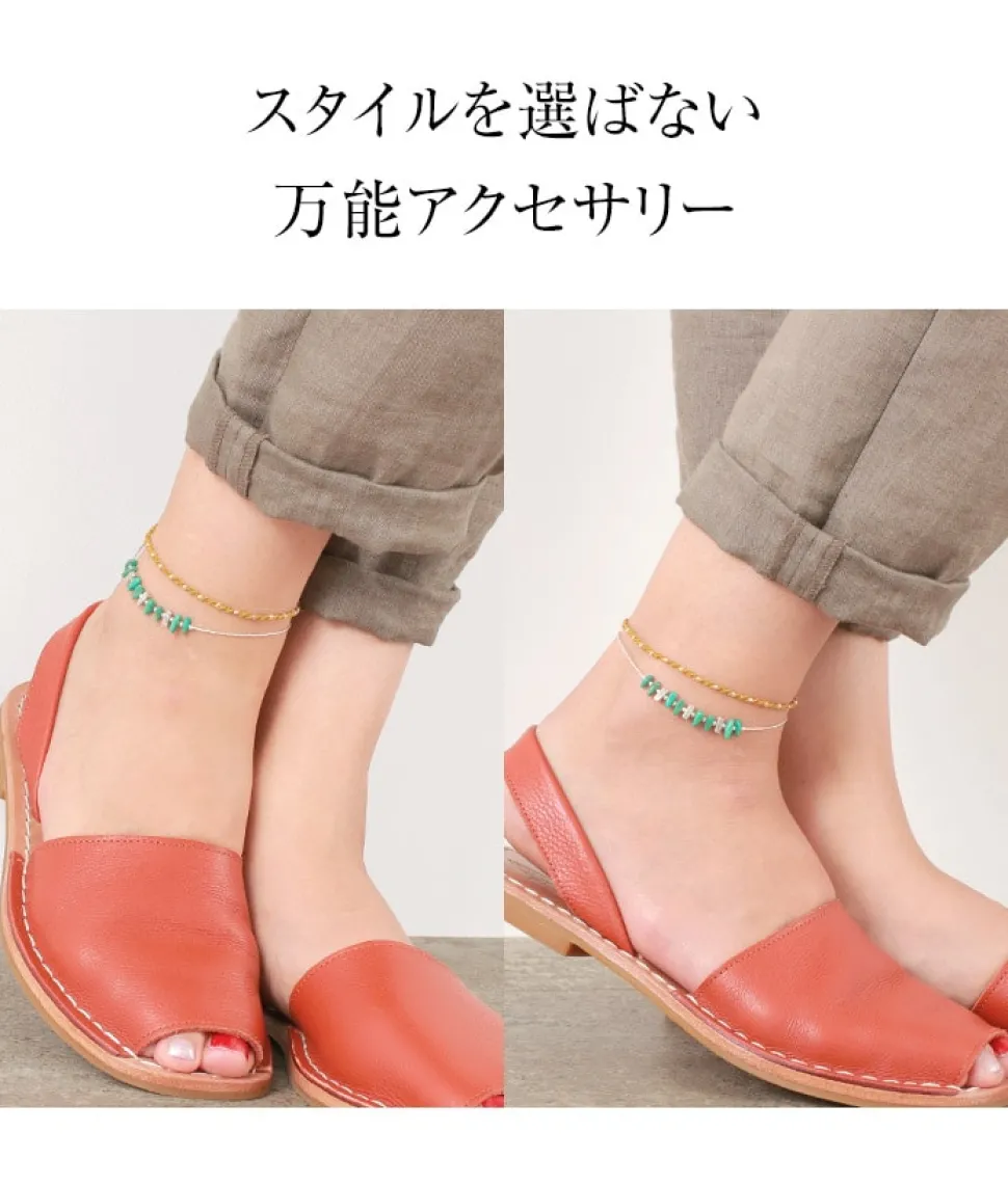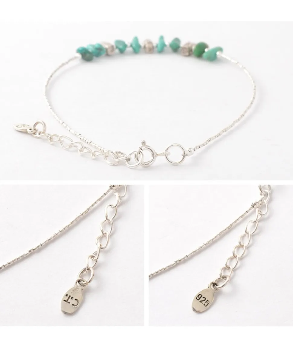 This anklet is designed with a deep selection of turquoise chips turquoise and Karen silver beads. The Karen Silver Tiny Beads are used instead of chains to give you a sense of the world that only Karen Silver can offer. One of the qualities and values of turquoise is “vividness”. It is characterized by a deep blue-green color that draws you in. The design is simple and makes the most of the turquoise color. Chips are “shards,” also known as “turban” in Japan. By arranging uneven turquoise chips in a bar shape, I was able to bring out more individuality. Tiny beads, the ‘smallest’ of the Karen silver beads, are used [Delicate and highly technical manufacturing method] Karen silver tiny beads are used instead of chains. The thin, high-purity silver is bent one by one into a round bead using a pin, a highly technical process. The delicate manufacturing process brings out the charm of this product.