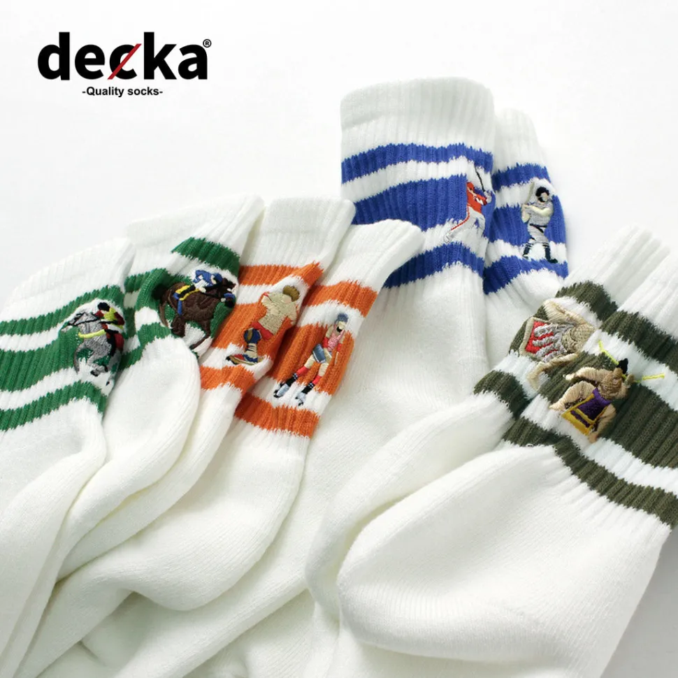 A Japanese socks brand founded in 2017. Embracing a lack of desire to express a particular worldview or values as its uniqueness, DECKA continues to create socks that can adapt to various values as part of clothing.