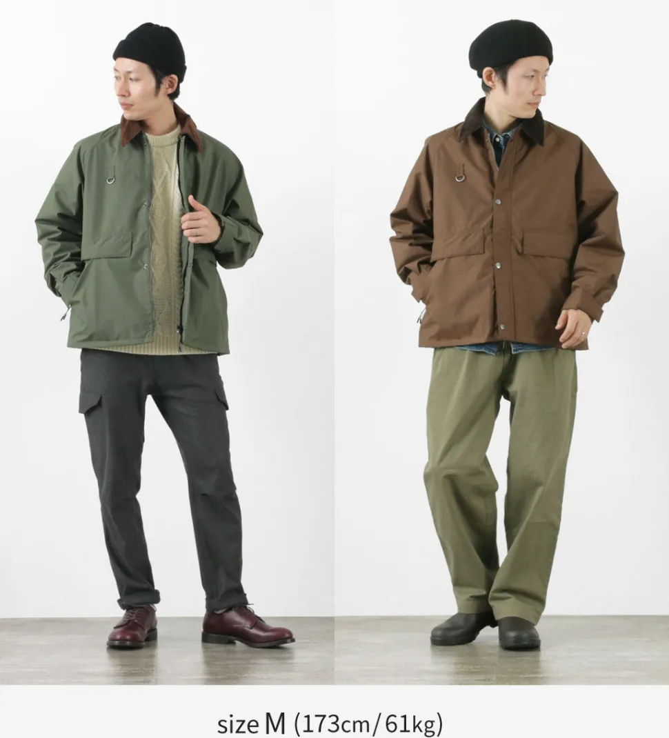 The collar is made of corduroy for added casualness. Pockets are divided into a main pocket and a handwarm pocket.
