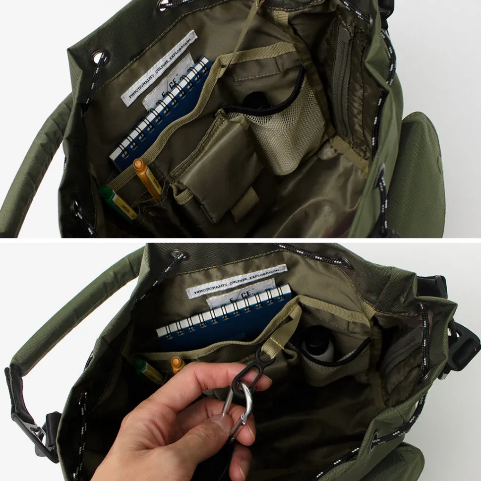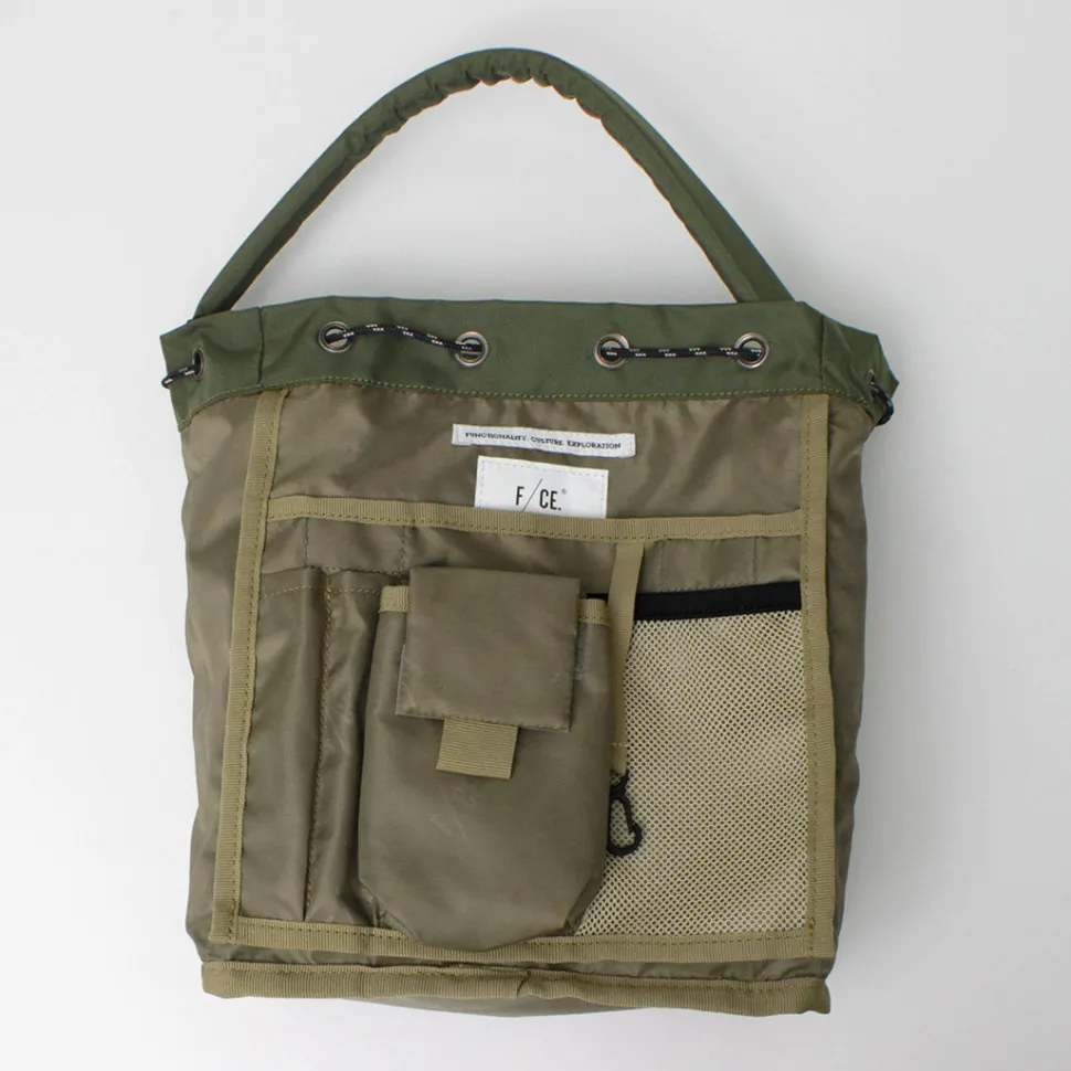 F/CE introduces a drawstring bag with shoulders strap that is lightweight, durable, and water repellent.