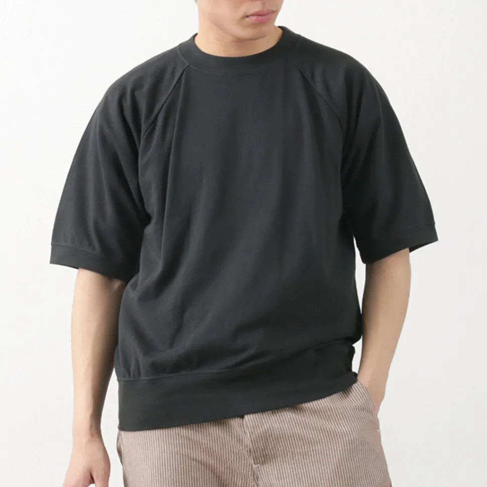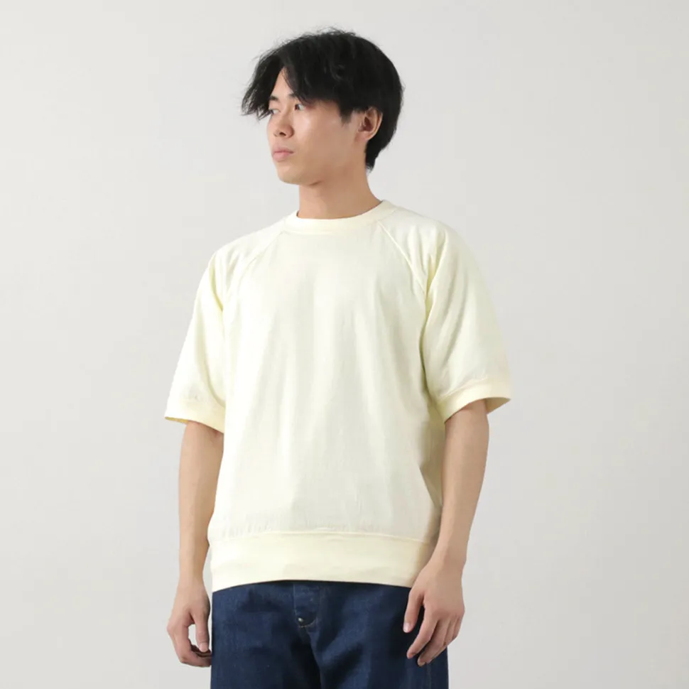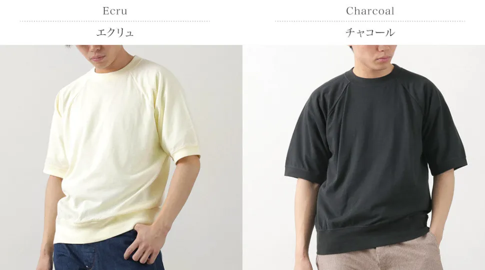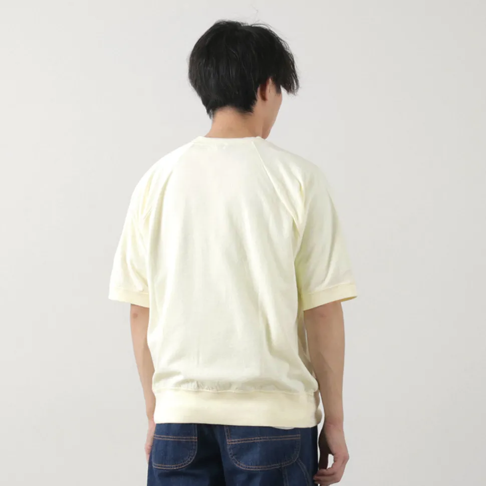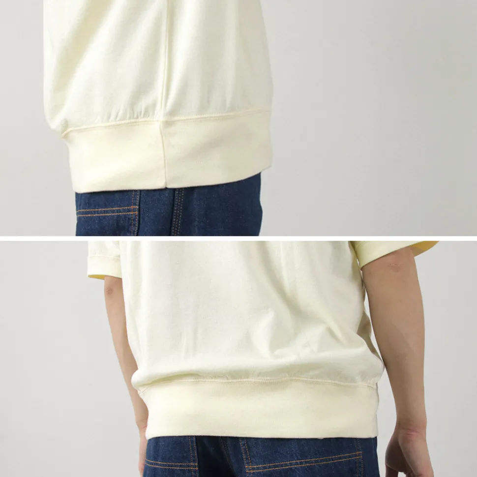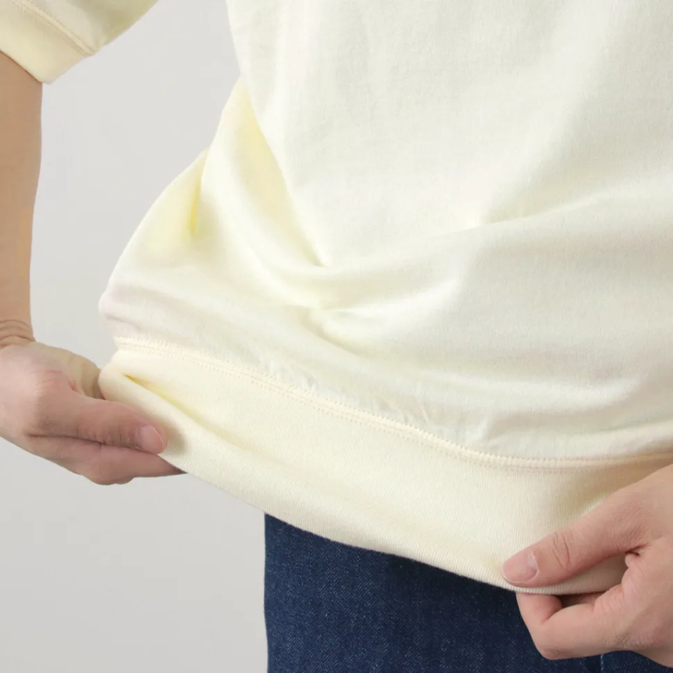 This short-sleeved sweatshirt is characterized by its “thinness” and “smoothness” so that it is hard to believe that it is a pile-lined fabric. While the general pile fabric used for sweatshirts has an image of being thick and stiff, this one is thinned down to a jersey level, making it as thin as wearing a T-shirt and smooth on the sleeves.