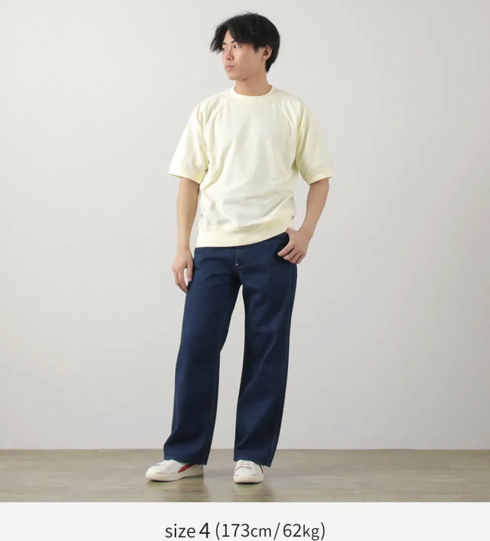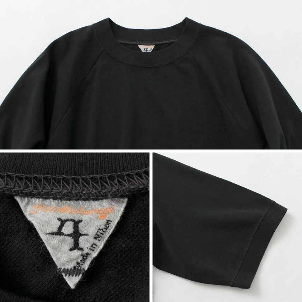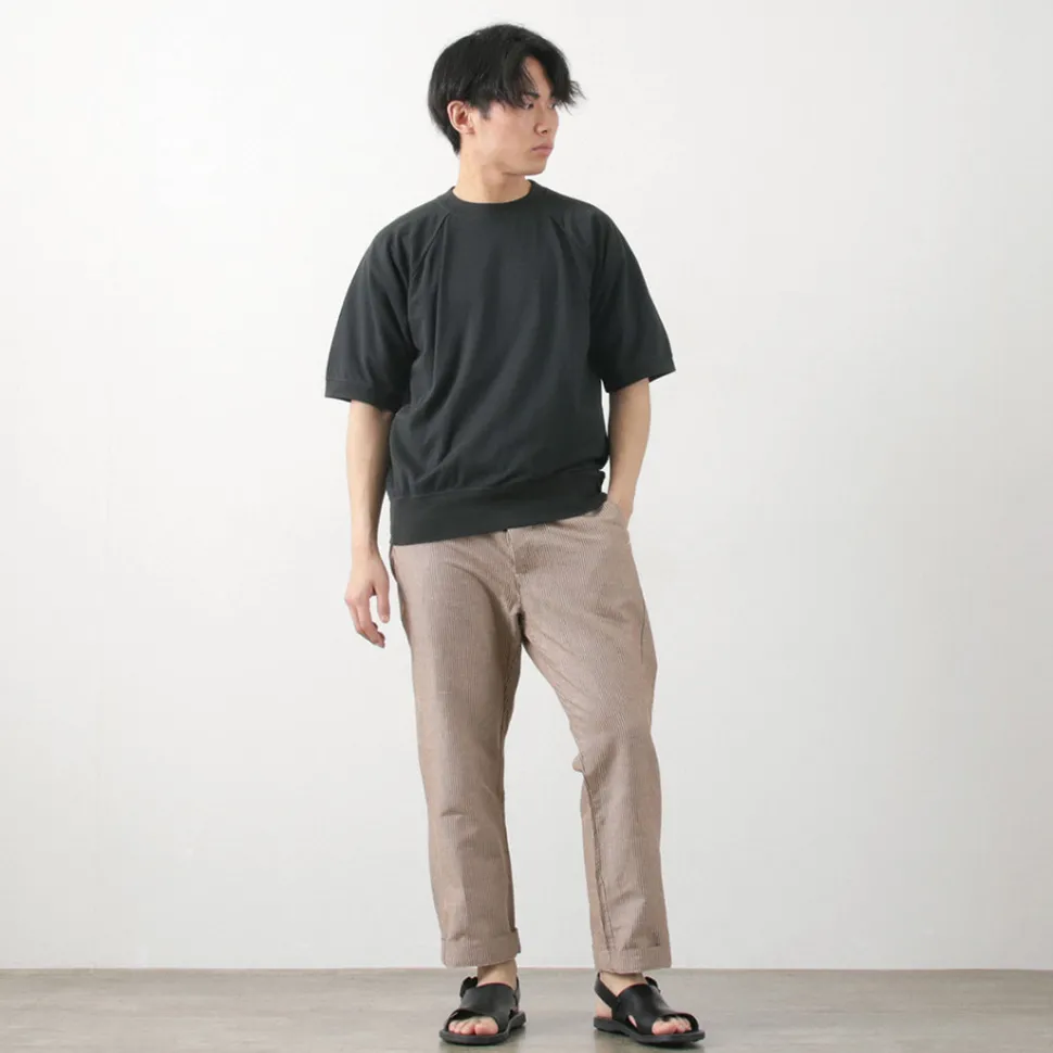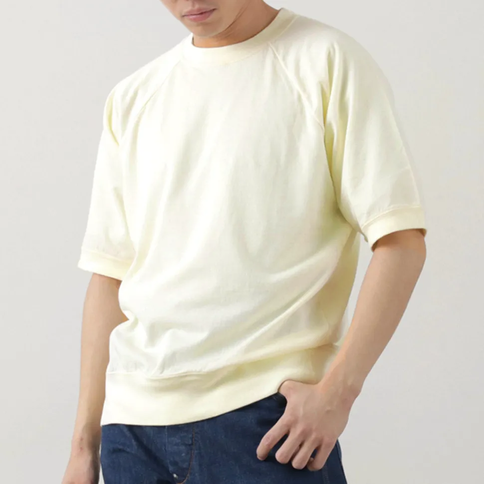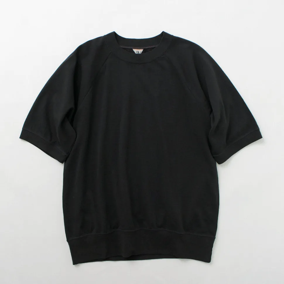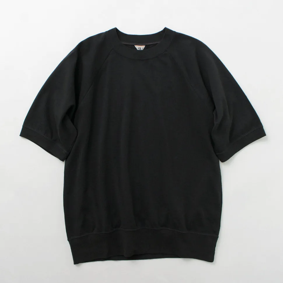 This short-sleeved sweatshirt is characterized by its “thinness” and “smoothness” so that it is hard to believe that it is a pile-lined fabric. While the general pile fabric used for sweatshirts has an image of being thick and stiff, this one is thinned down to a jersey level, making it as thin as wearing a T-shirt and smooth on the sleeves.