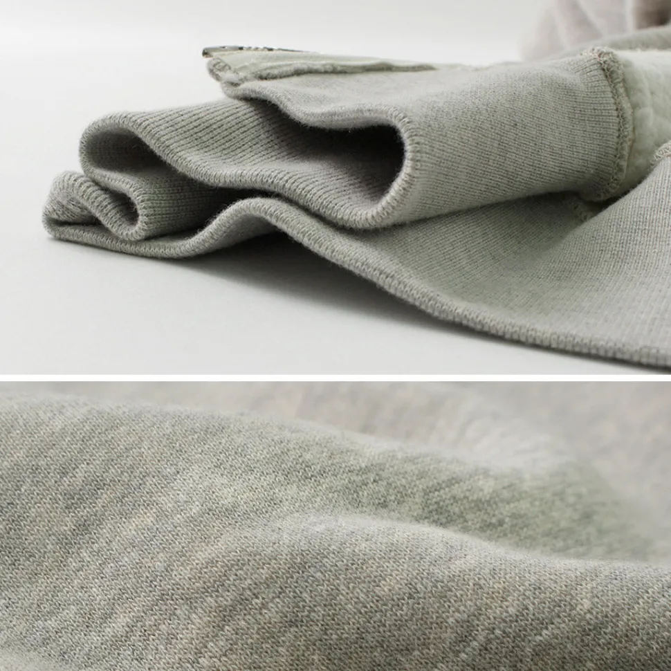 Furthermore, the reverse side uses a traditional technique called “tube brushing,” where a cylindrical body is brushed while keeping its shape intact using rare machinery. This creates a wearing experience that gently envelops the body.