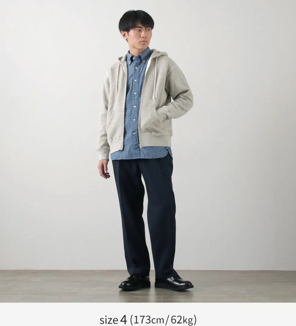 FILMELANGE is proud to introduce a zip hoodie made of 100% cotton-lined fabric developed using the best recipe currently available. The outer fabric has a beautiful luster like silk and a softness like cashmere, and the body is softly and fluffy wrapped in a comfortable fit.