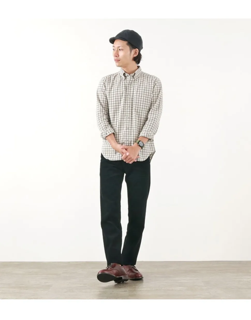 A reworking of the 14W polyester blend corduroy found on Levi’s 519, this slim straight is a universal basic. The silhouette is the original F.O.B FACTORY pattern, a slim straight with a deep crotch. The 5-pocket design is universal, trendy and basic. The rivets are deliberately placed to create a heavy feel. Japanese corduroy with a vintage feelCotton and polyester blend corduroy. From the ridges to the colour of the corduroy, the fabric has been re-produced in a vintage style. Slim and well taperedThe cut is slim and well tapered with a vintage look. The moderate thickness of the fabric, the easy colouring and the standard shape make it ideal for all seasons. A cool silhouette is achieved by wearing them short with no cushions.