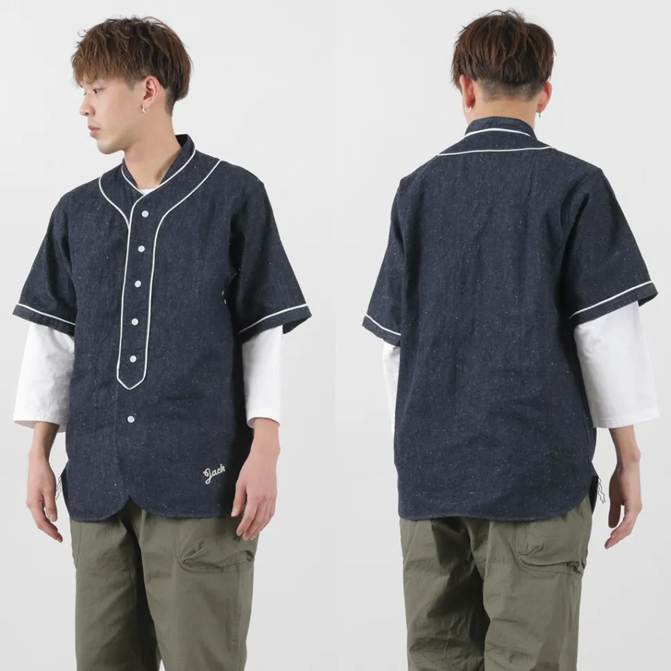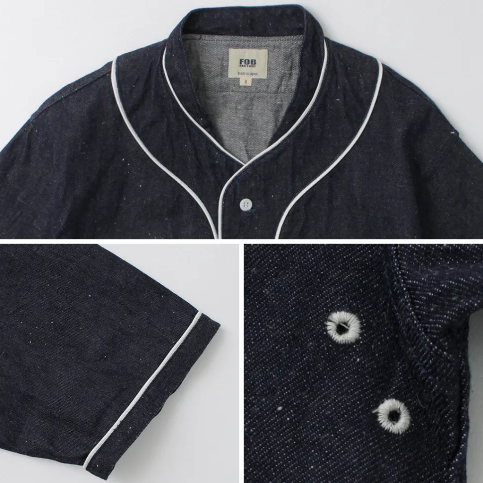Introducing the Denim Shirt, FOB’s take on the vintage baseball shirt. This shirt is made of light-weight denim fabric with cotton linen nep yarn. It is characterized by its rough, uneven texture and natural roughness. With a slightly loose box silhouette, it is finished in a piece that can be layered and enjoyed to the fullest.