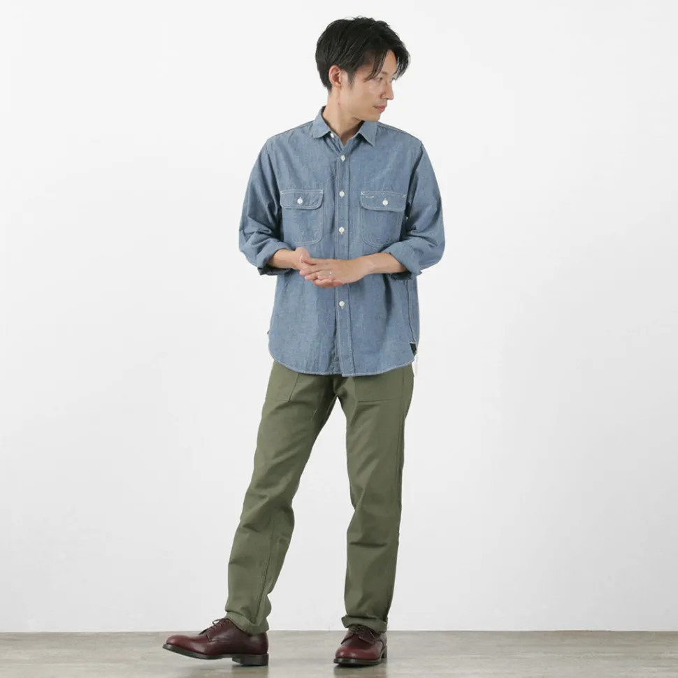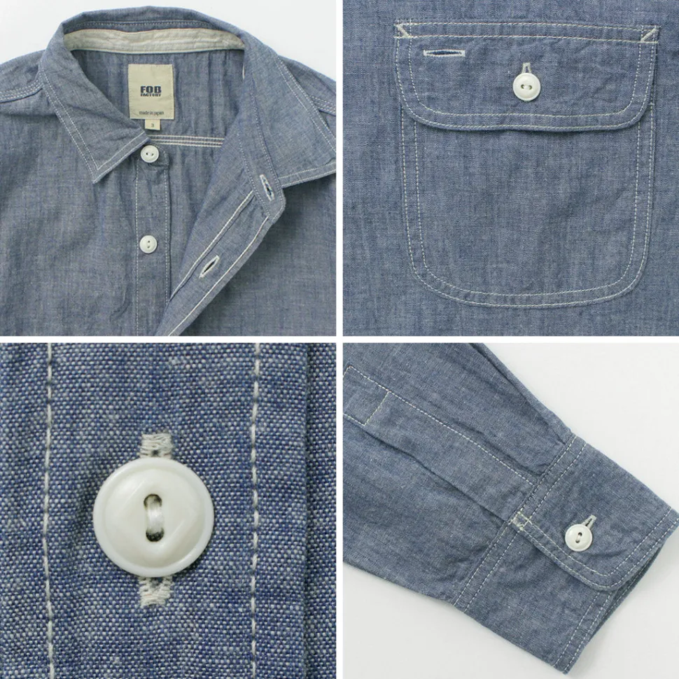 Introducing FOB FACTORY’s classic chambray work shirt.