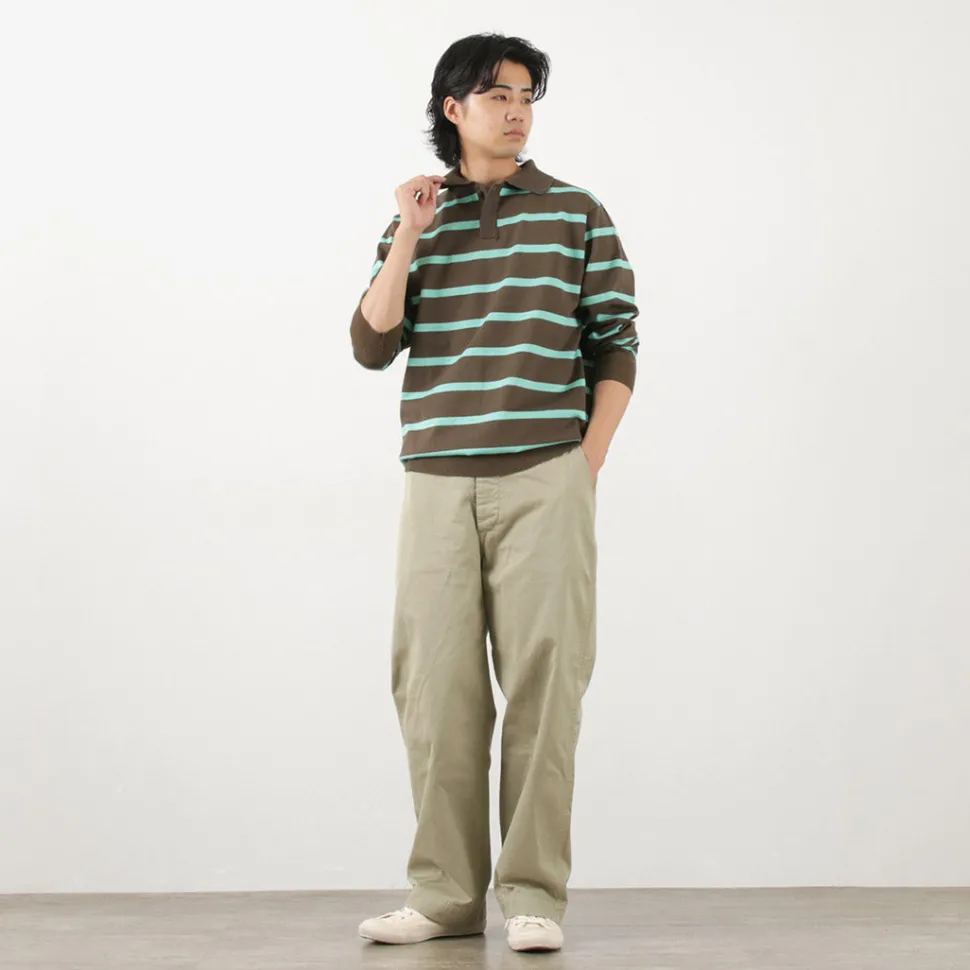 FUJITO introduces a lager shirt with an eye-catching thick stripe pattern. This is a piece with FUJITO’s unique specifications, a knit sweater made from a lager shirt like the one worn by the famous painter David Hockney. Enjoy this item with an outstanding sense of presence, which can be used as an inner layer as well as a single piece.