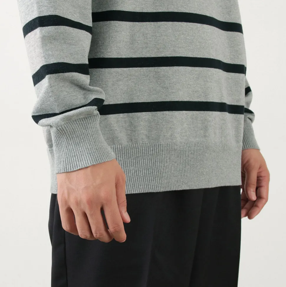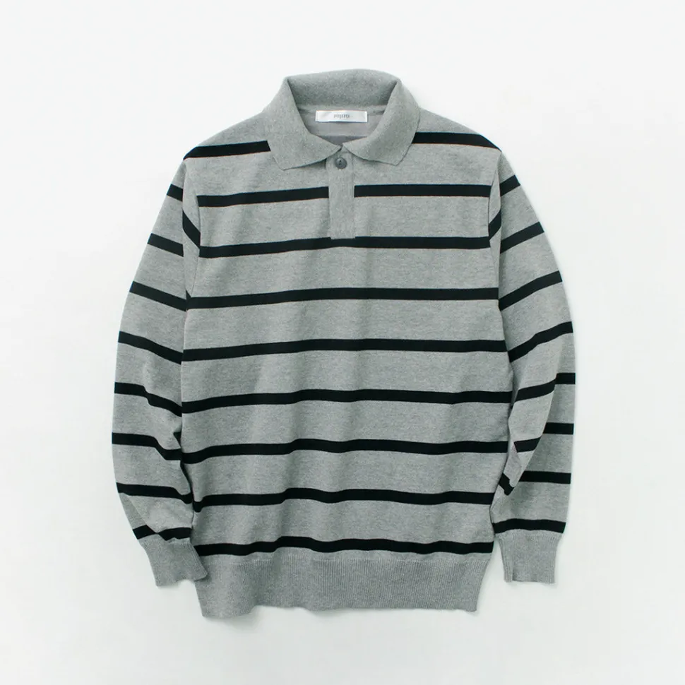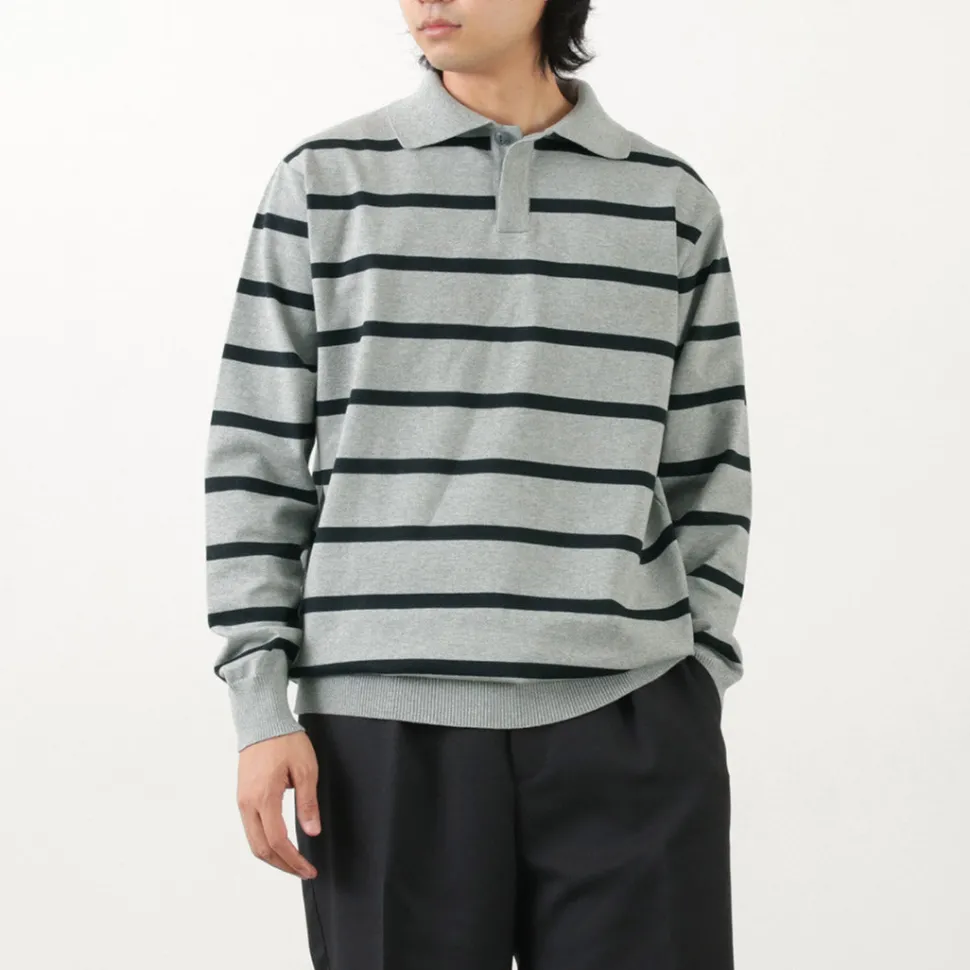 FUJITO introduces a lager shirt with an eye-catching thick stripe pattern. This is a piece with FUJITO’s unique specifications, a knit sweater made from a lager shirt like the one worn by the famous painter David Hockney. It features a comfortable fabric and a moderately loose silhouette.