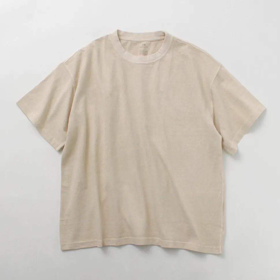 GARAGE GREEN WORKS introduces a basic short-sleeved Tee shirt that can be used hard. The moderately thick fabric using open-ended yarn containing plenty of air is characterized by its dry touch and natural texture.
