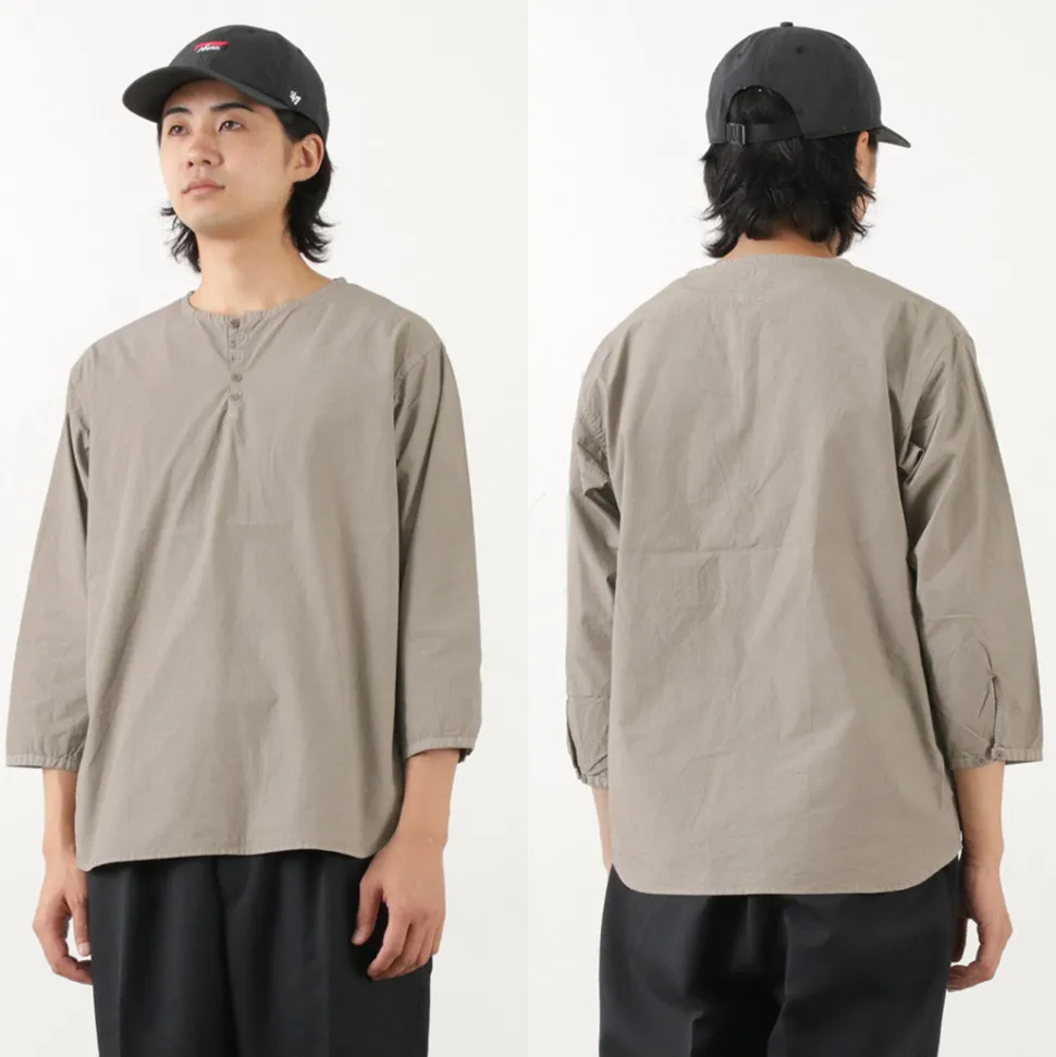 The base of the design is a sleeping shirt that was issued to military personnel as pajamas. The fabric is made of high-density cotton that is slightly thicker than the original, and has been updated so that it can be worn alone without discomfort.