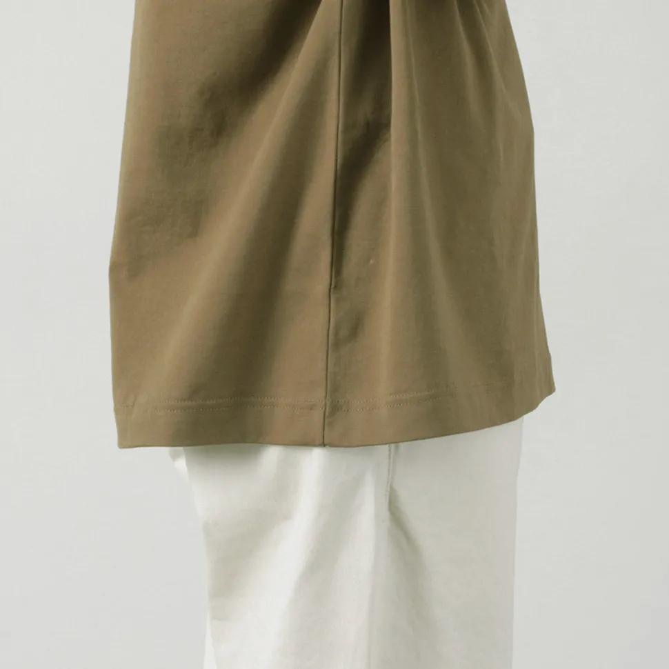 A moderately relaxed box silhouette. With a wide size that does not pick up body lines, it is a piece that suits a wide range of body types.