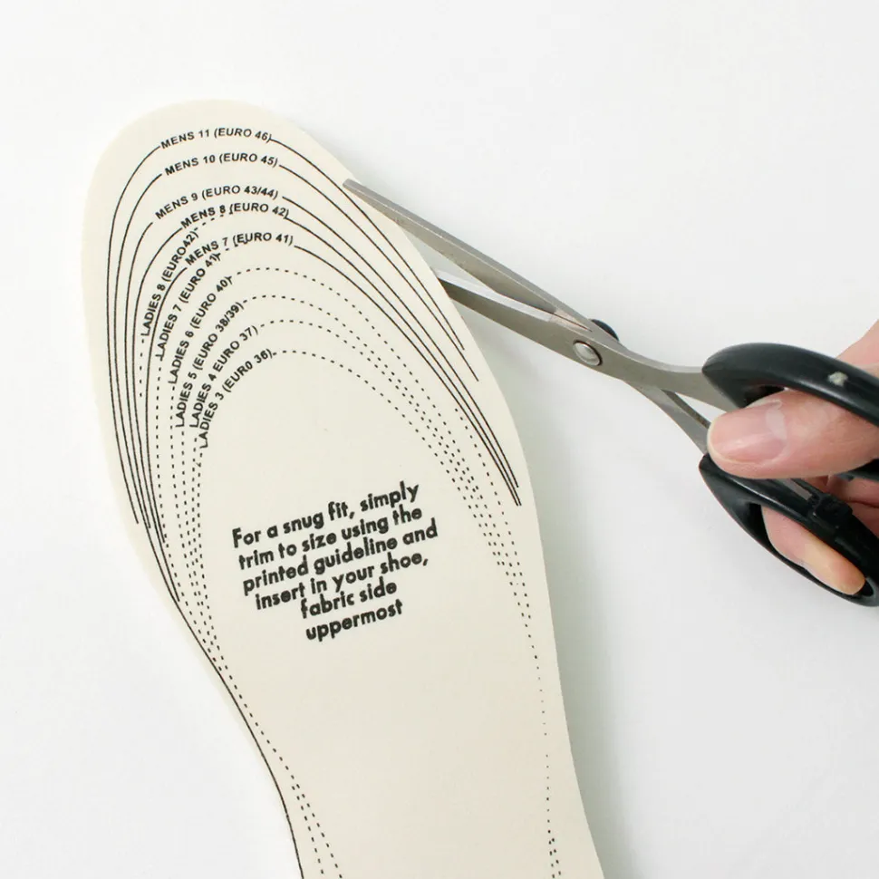 These insoles are unisex and come in UK sizes 3 to 12 (corresponding to Japanese sizes 22.0 to 30.0 cm and EU sizes 36 to 47), making them suitable for a wide range of sizes. You can cut them to your desired size using the printed guide on the back. Thanks to their thin design, they can be used with various types of shoes, including boots, rain shoes, business shoes, sneakers, pumps, and more.
