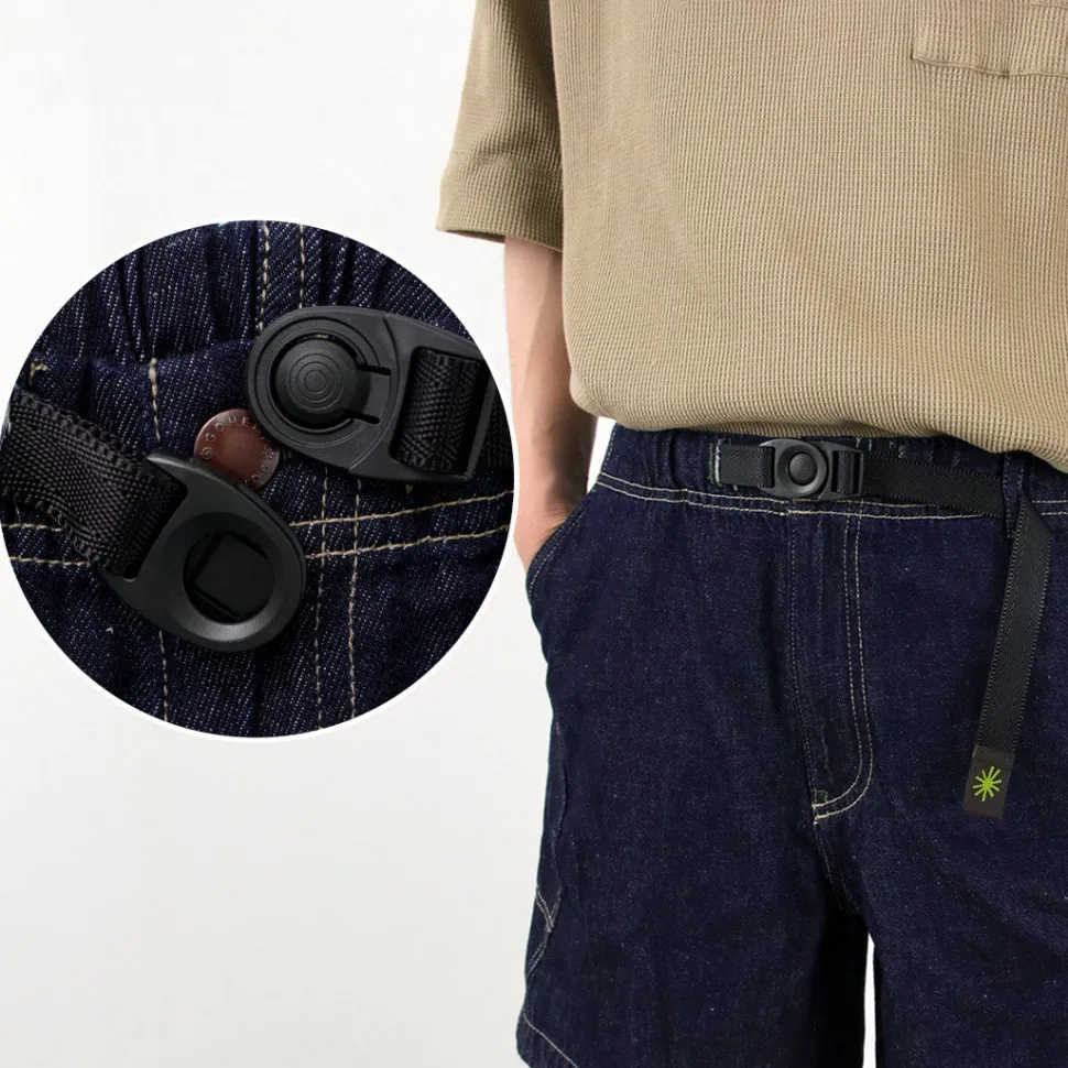 High Explorer Pants made of classic hemp cotton denim have been updated into a pair of shorts perfect for summer. The pockets on both sides are triple layered, and the unique curved stitchwork gives a stylish look to your coordination.