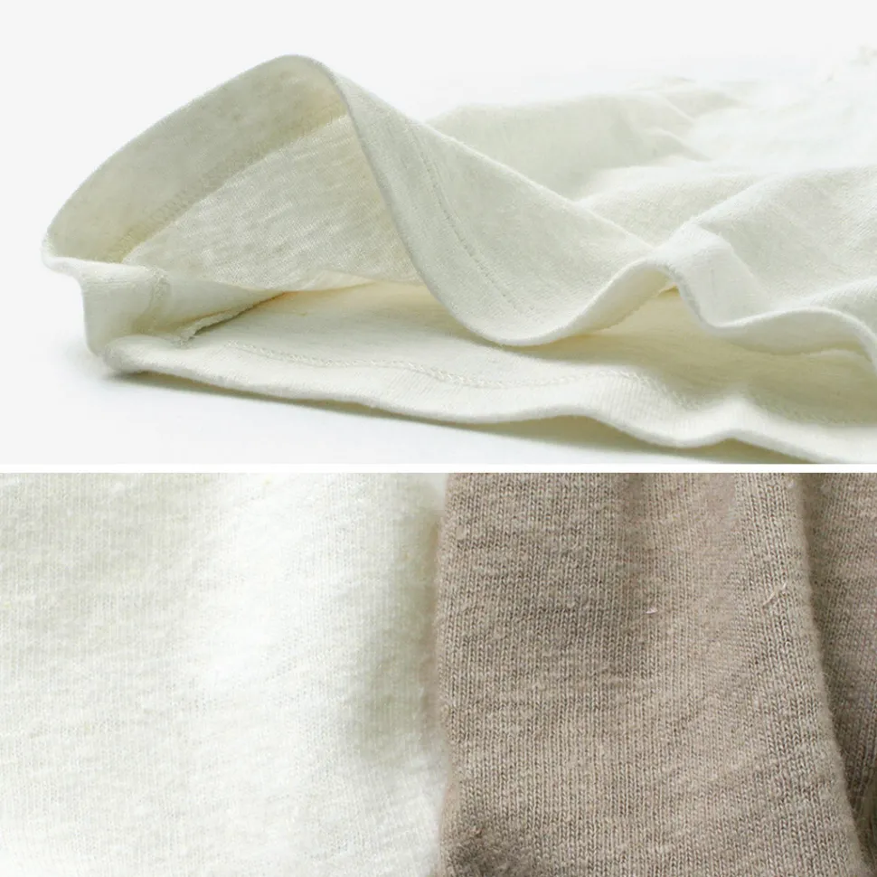 Although the fabric is somewhat thin, the collar and armpits are finished with thick piping. It is also sturdy enough to handle stretching when putting on and taking off the garment. Of course, it can be washed at home, and because it is something you wear every day, easy care is also a nice point.