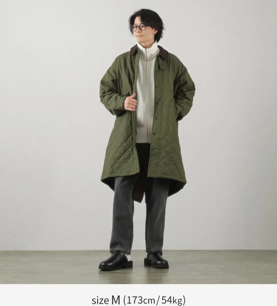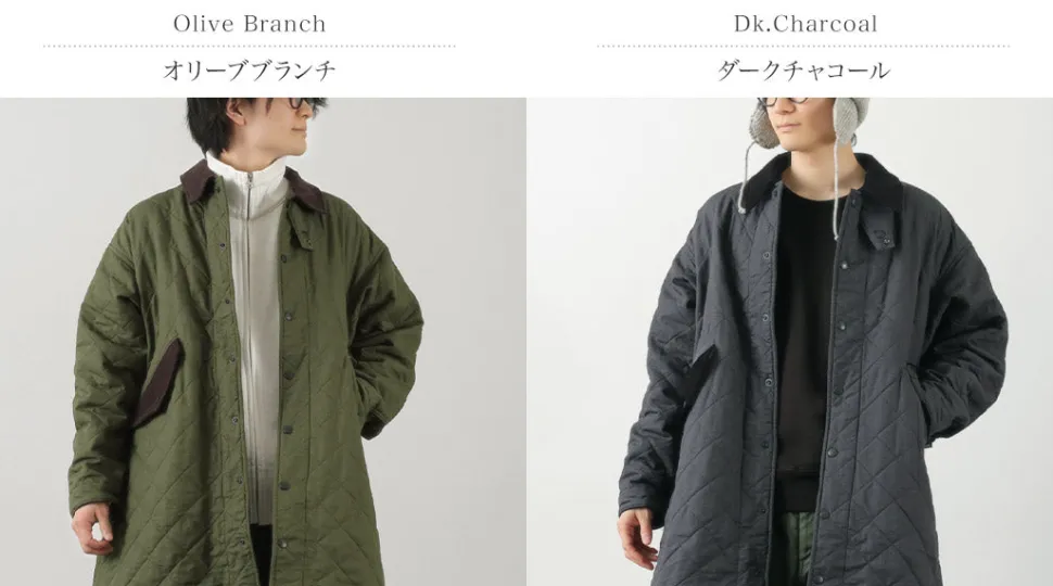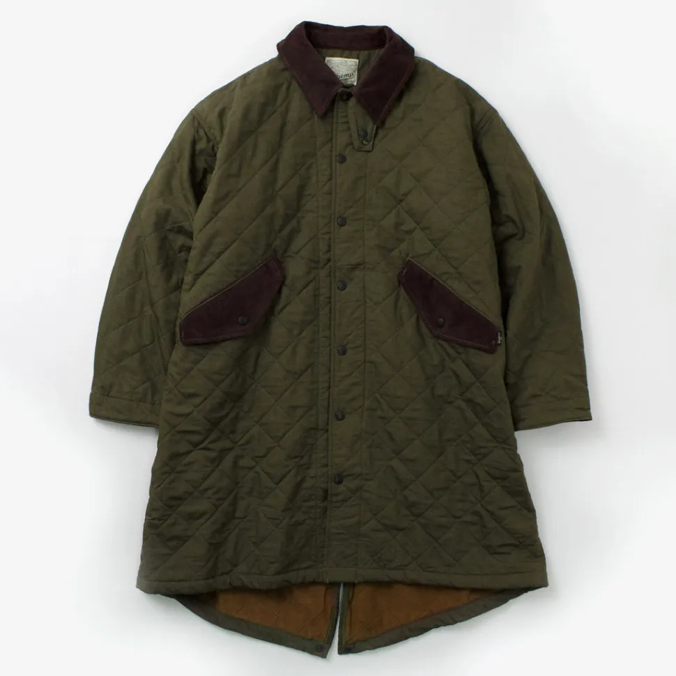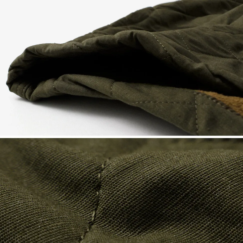 A long-length jacket modeled after the M65 parka. It features a unique combination of vintage-style hemp cotton fabric and corduroy details on various parts.