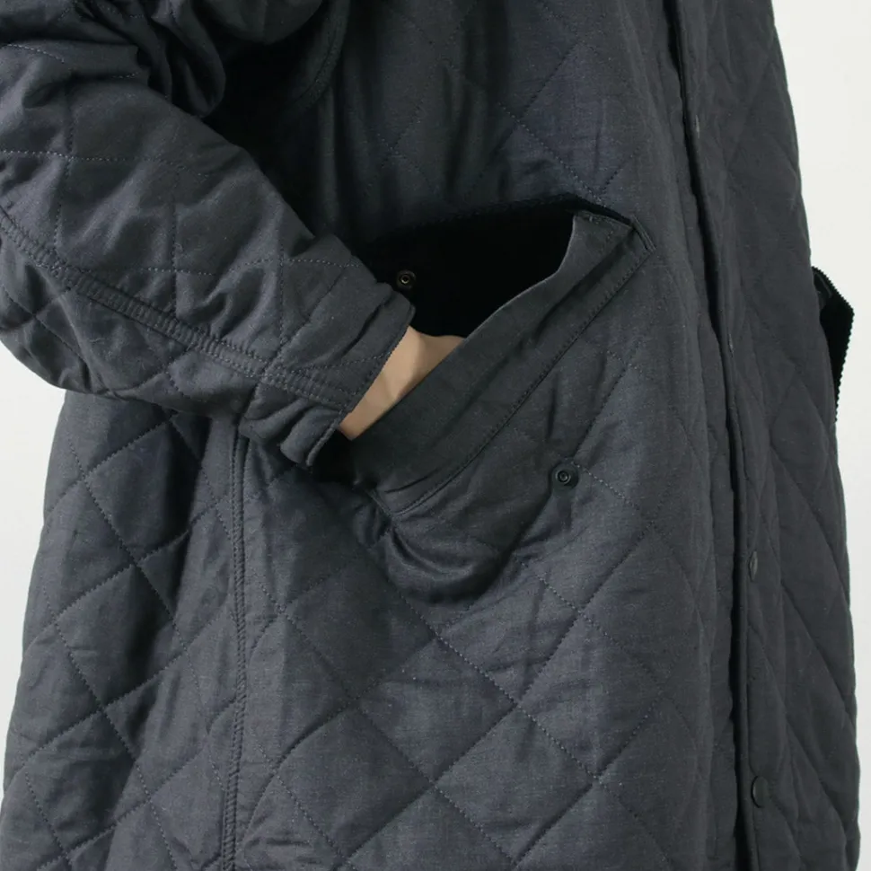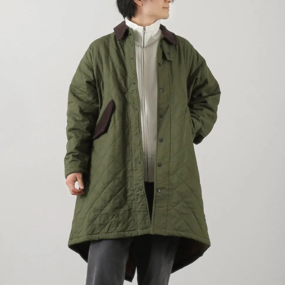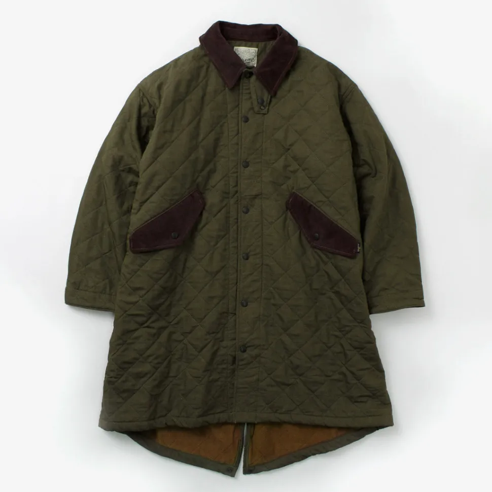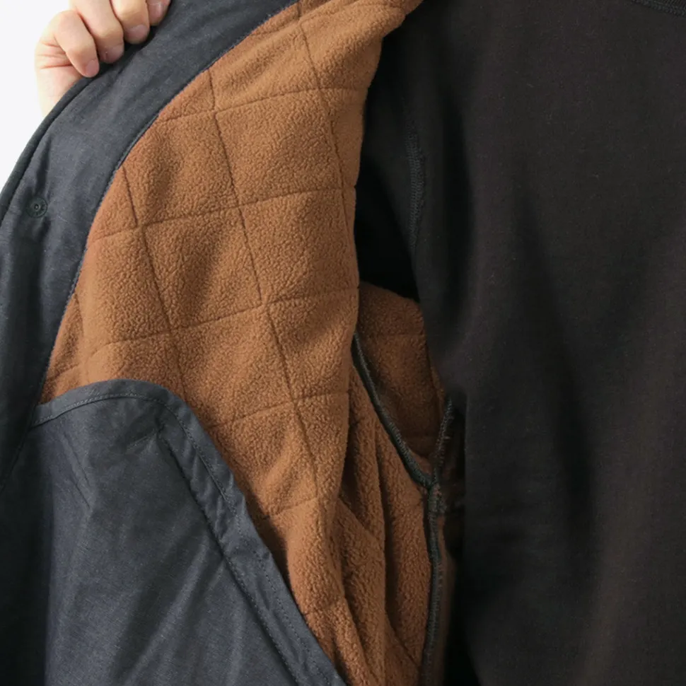 A long-length jacket modeled after the M65 parka. It features a unique combination of vintage-style hemp cotton fabric and corduroy details on various parts.