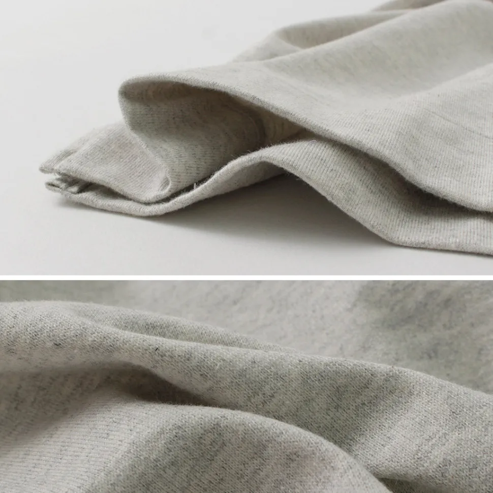 Adopting a fabric blended with 30% hemp and 70% organic cotton. Compared to the standard hemp-cotton jersey fabric, the higher proportion of cotton results in a slightly firmer finish. Also, it reduces the characteristic roughness of hemp, making it pleasant to the touch when in direct contact with the skin.