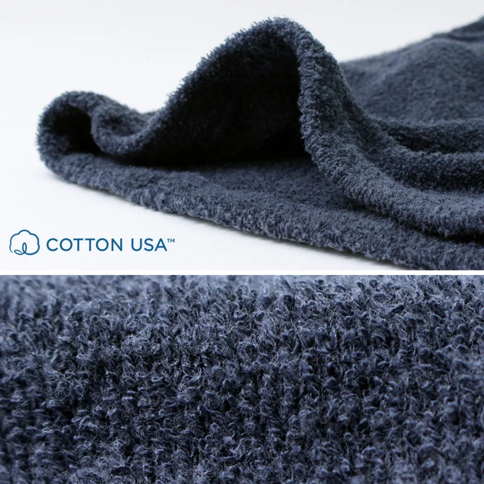 The pile fabric, which maximizes the quick-drying properties of “USA cotton” suitable for Japan’s humid climate, has a smooth and comfortable texture, making it pleasant to the skin even when worn directly.
