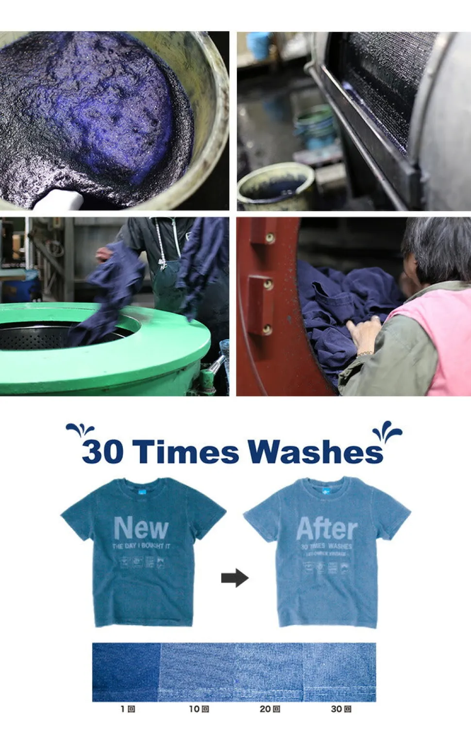Good On products must be strong and sturdy enough to withstand dyeing, washing, and high temperature drying during the production process. A high level of strong sewing is essential, as products are pulled, twisted, and rubbed against each other in the dyeing kettle and in the washing and drying machines, putting a great deal of stress on the seams.