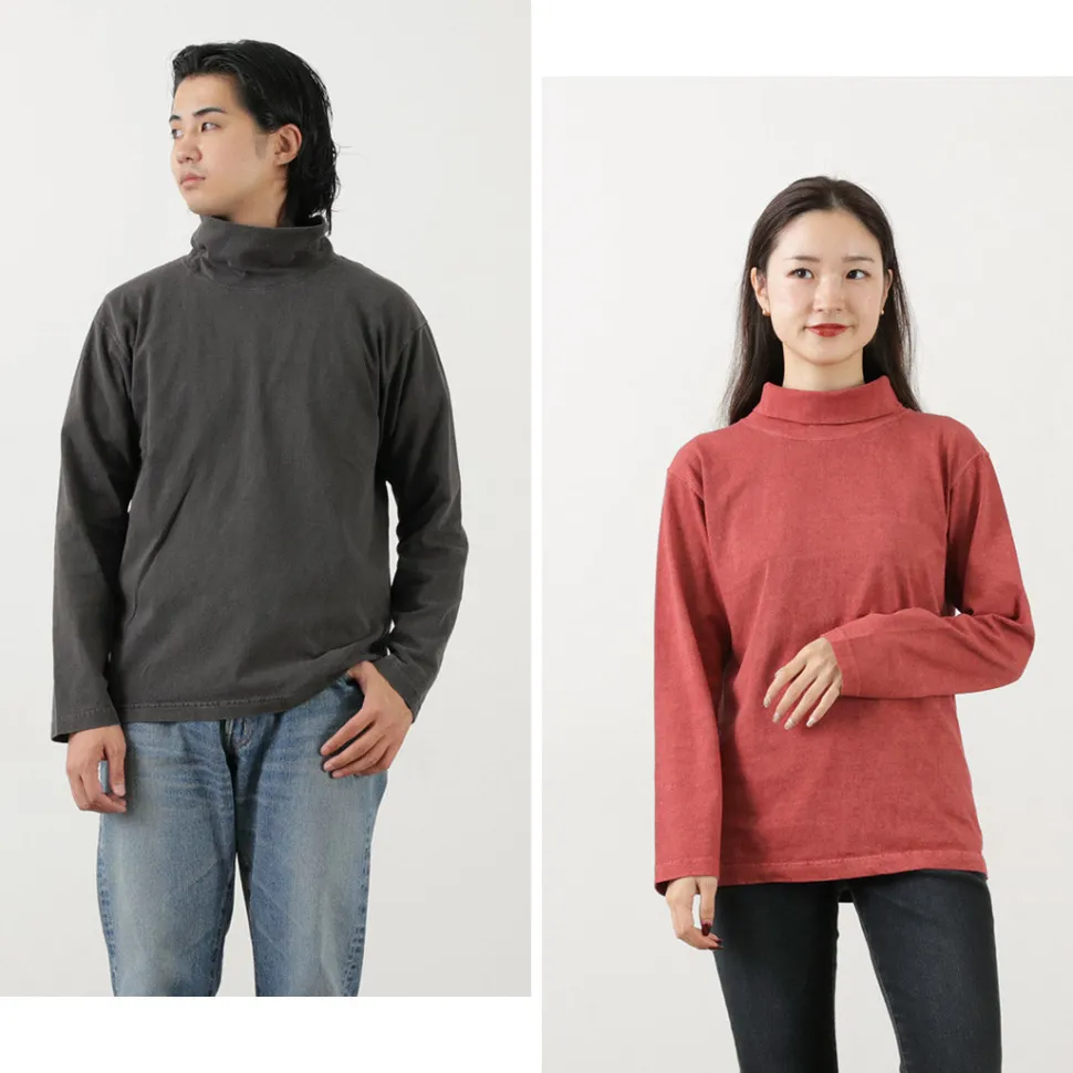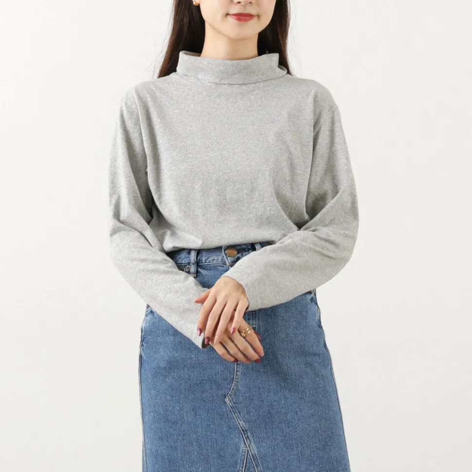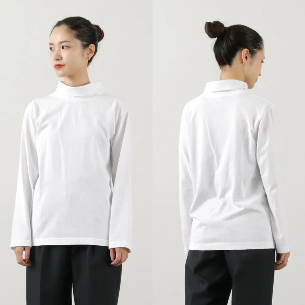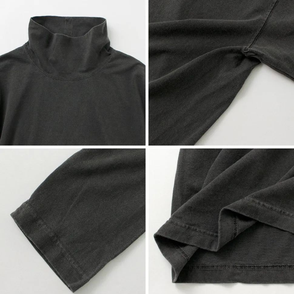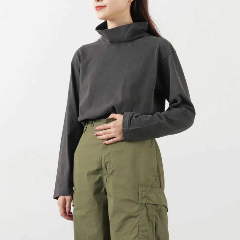 A high neck with a moderate height is used for the neck. In addition to being able to be worn folded back, this item is also recommended for those who do not like turtlenecks, as it is made of the same light jersey fabric as the body.