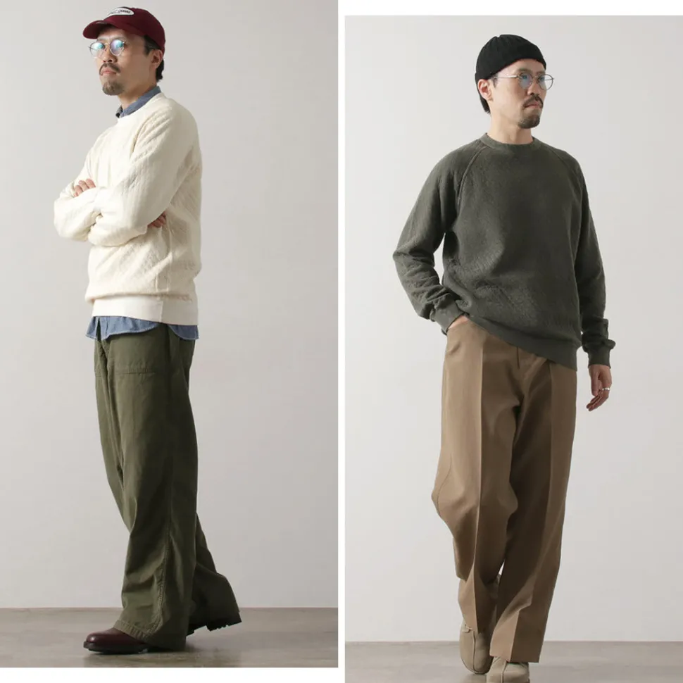 Not only the fabric, but also the details are full of elements reminiscent of vintage items, such as underarm gussets and wide ribbing.Despite its simple design, this is a versatile item that matches layering and casual styling with innerwear showing.