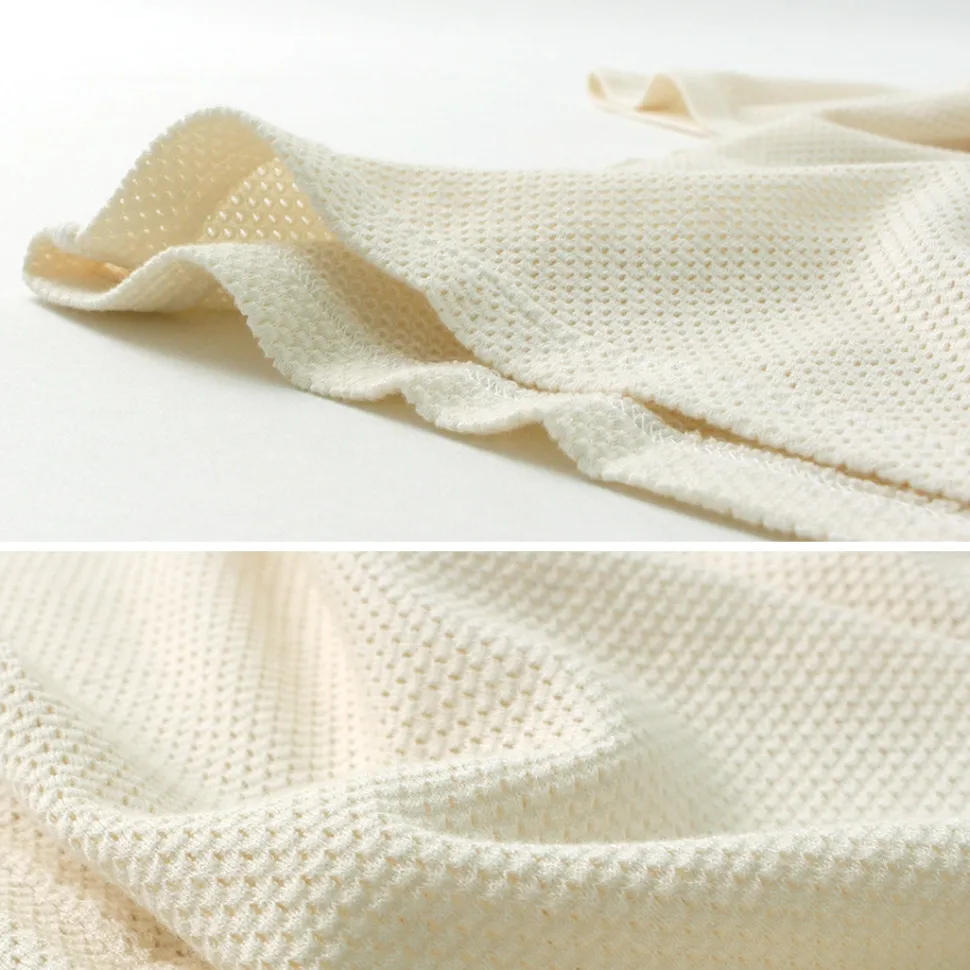The mesh fabric is airy, cool, comfortable to the touch, and moisture absorbent, making it comfortable even during the sweaty season.