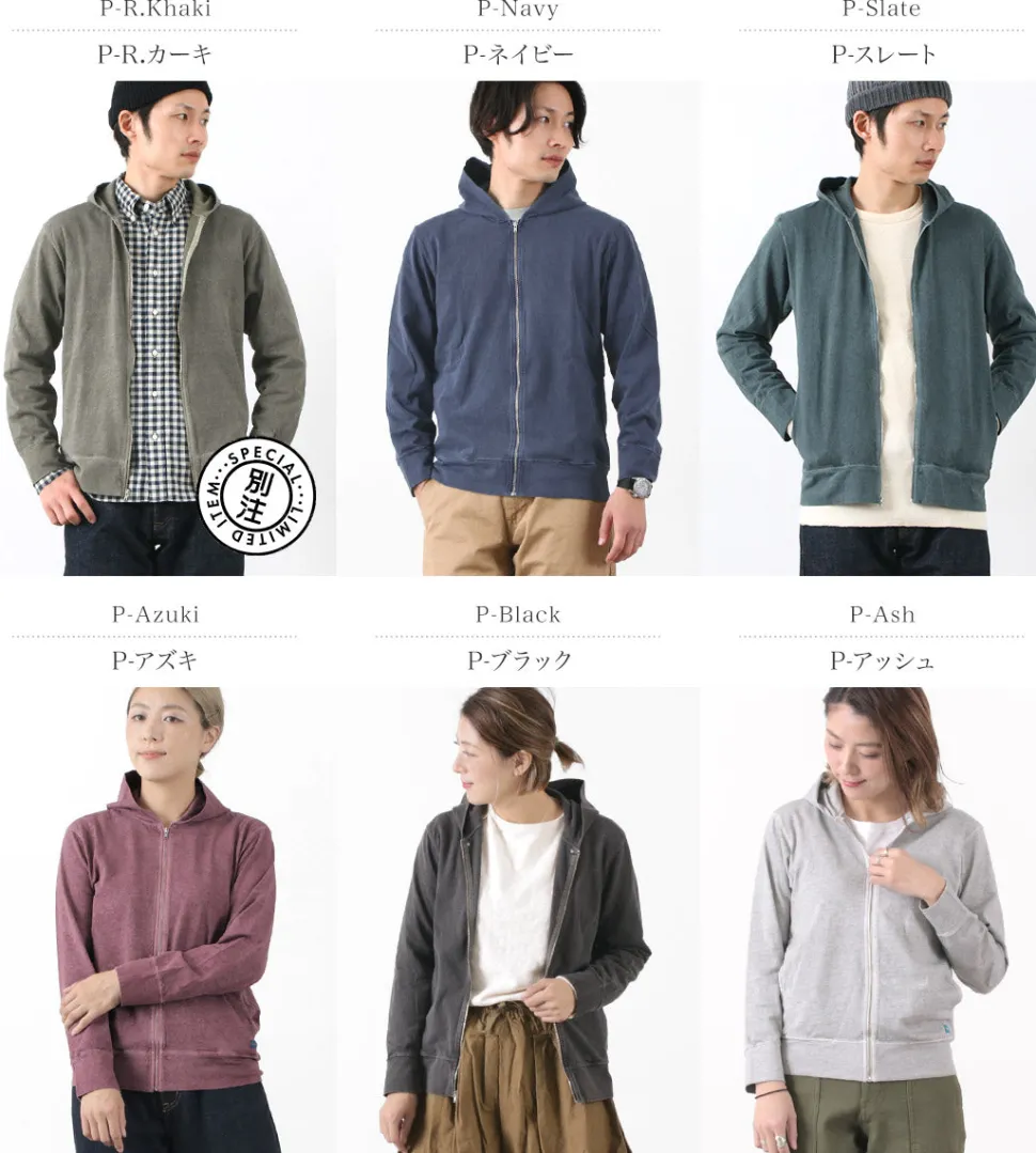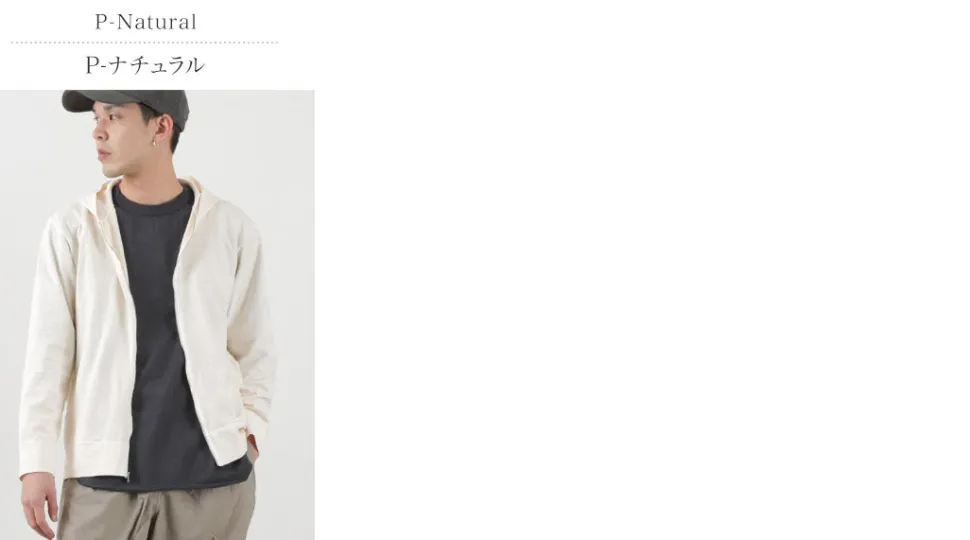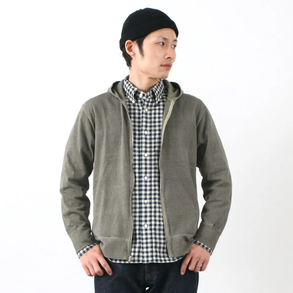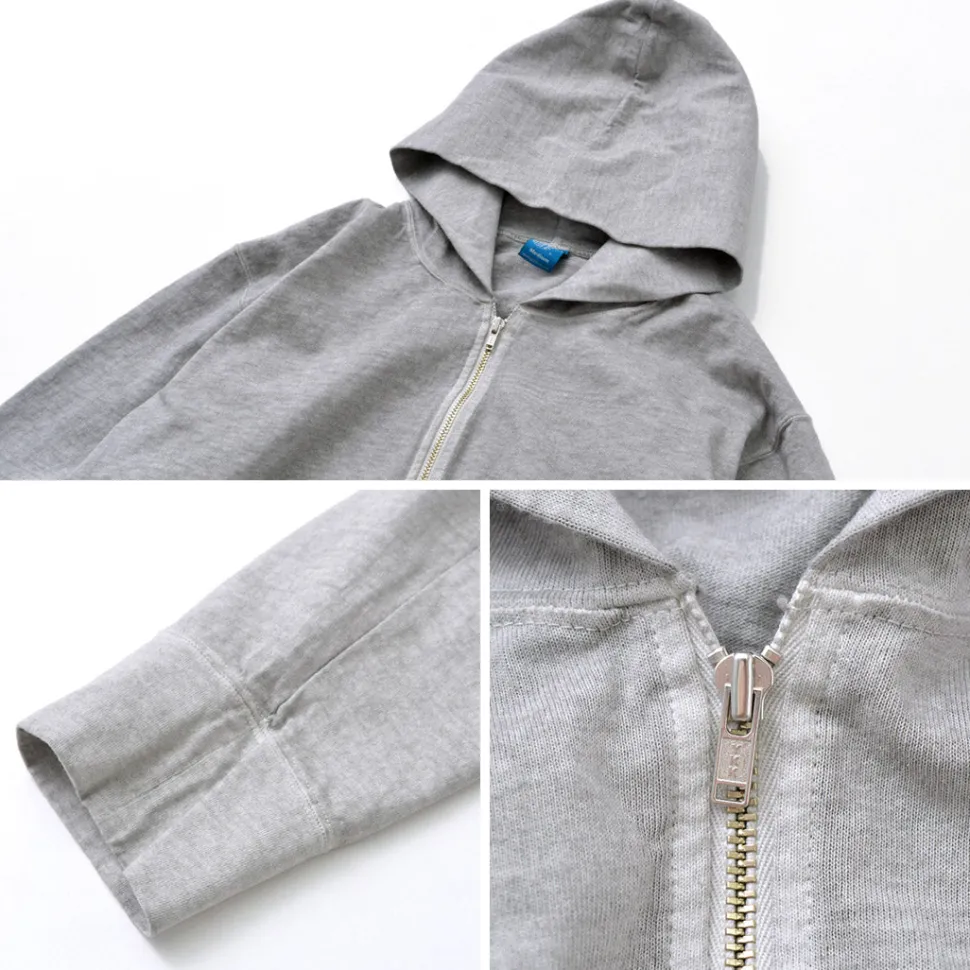 This light-textured zip parka is easy to wear regardless of the season. It is sturdily sewn with two stitches and features a soft 6oz fabric made of 100% cotton for a gentle feel against the skin.