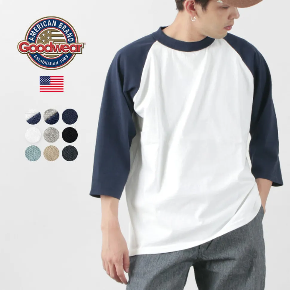 GOODWEAR is a brand established in 1983 that continues to stick to made in U.S.A. in both materials and manufacturing methods. This is a raglan, three-quarter sleeve T-shirt made of 7.2 oz. heavy-weight cotton, which is synonymous with the brand as a standard item. GOODWEAR uses “COTTON U.S.A.,” a high-quality U.S. cotton that is highly regarded worldwide. This is a mark of trust given to products made from 50% or more of the world-renowned high-quality U.S.A. cotton, certified by the CCI International Cotton Council, and only to products that have passed the strict quality standards of Japan. The American cotton has a unique rough texture, and the more you wear it, the more it becomes familiar with your skin and the more it tastes good.