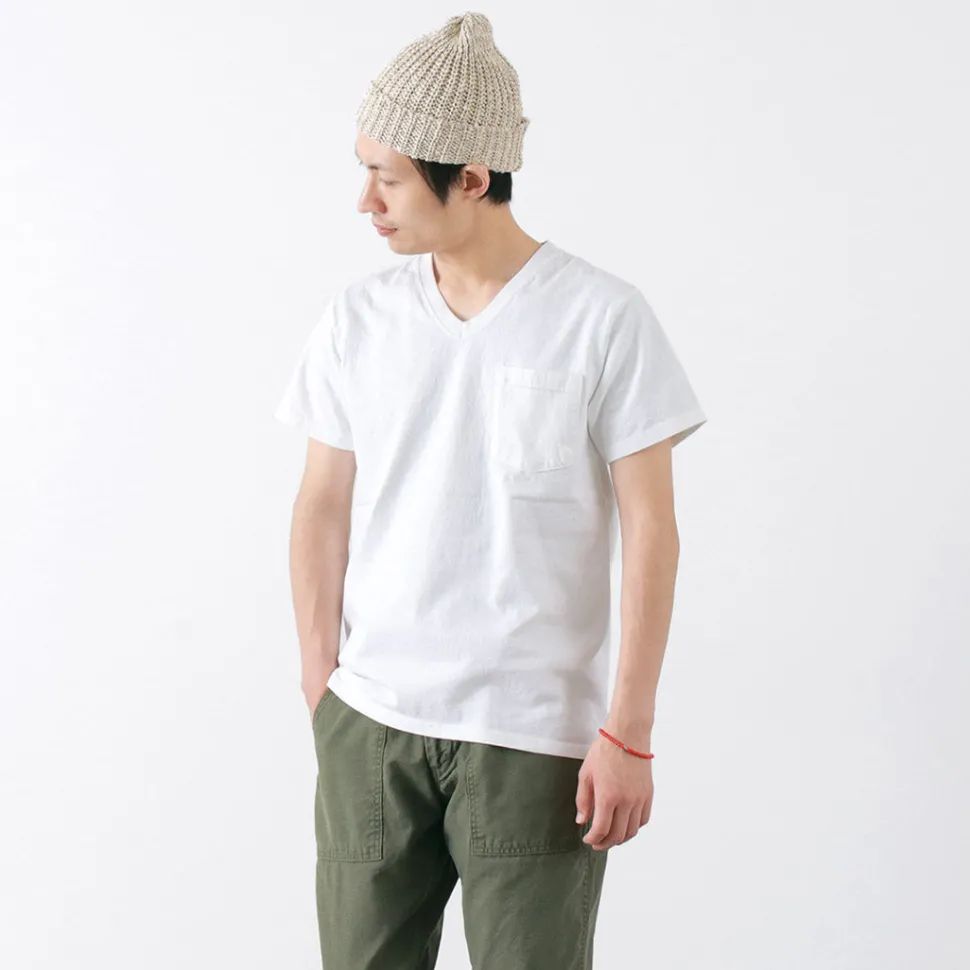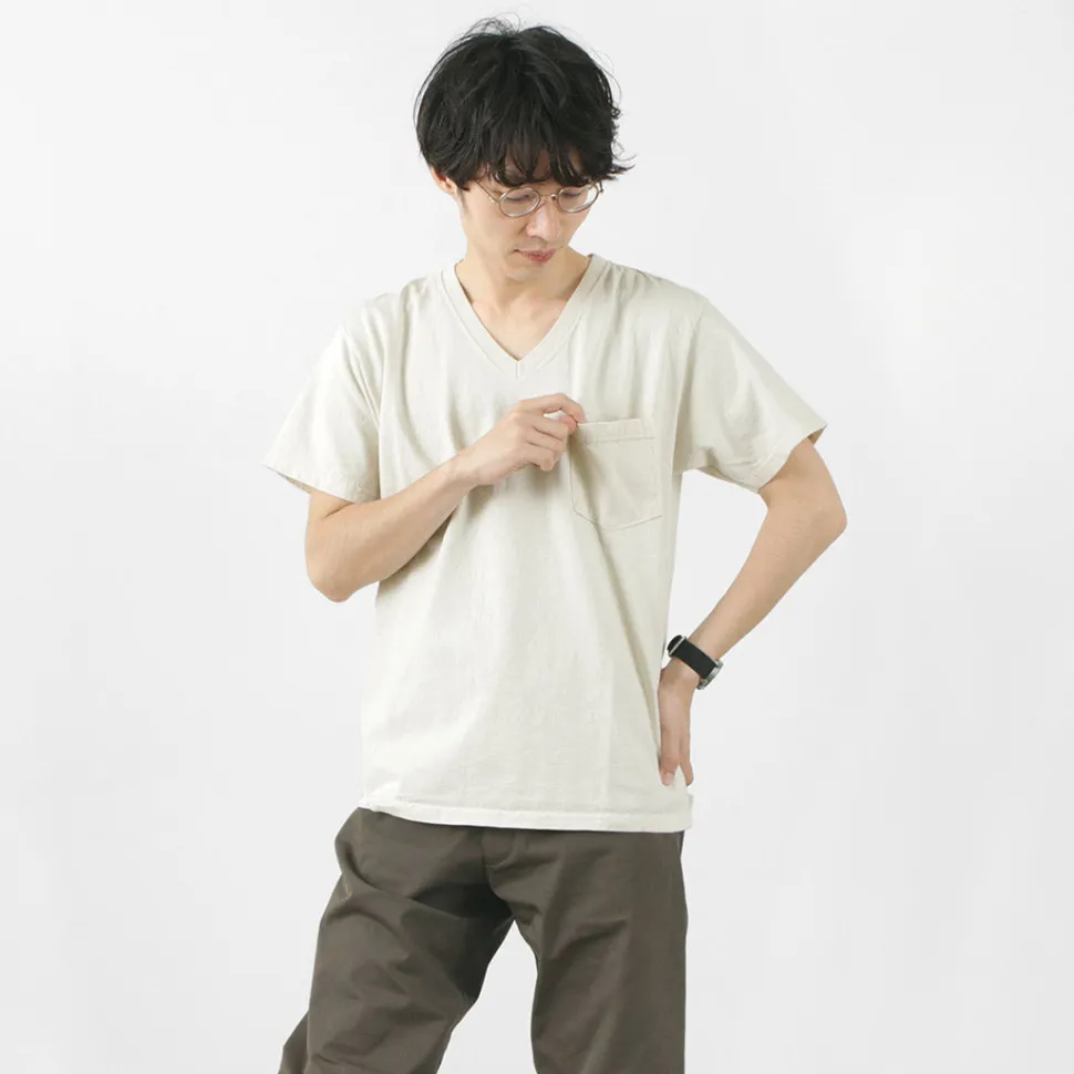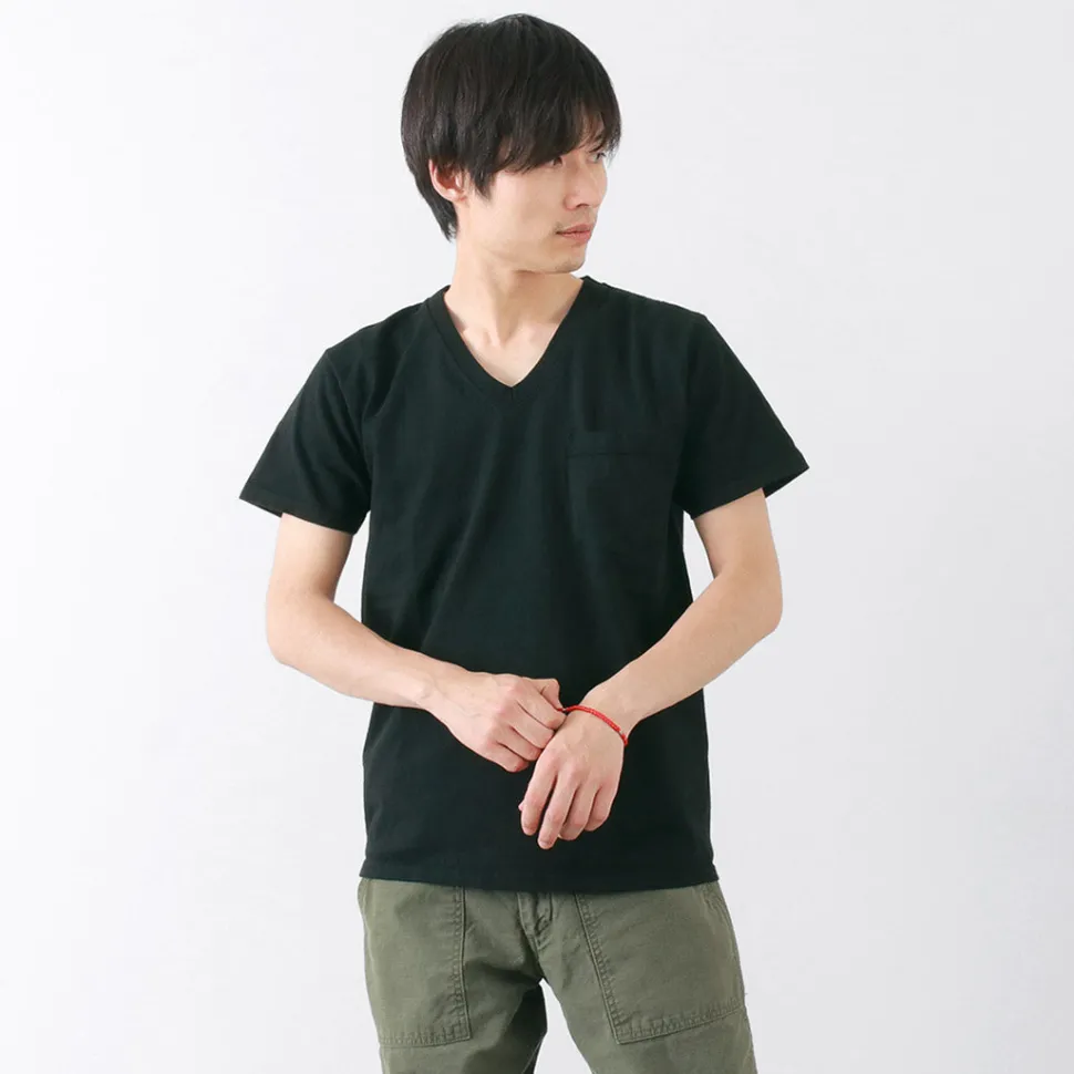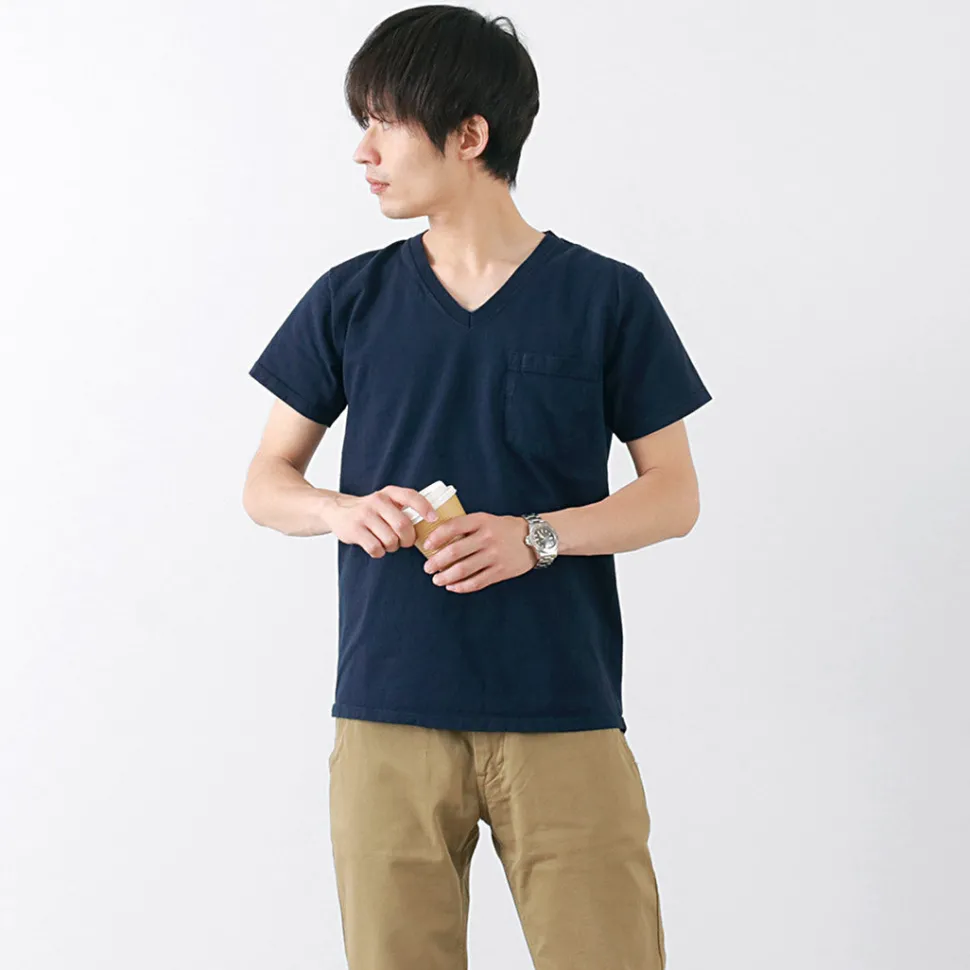 This is a short-sleeved pocket V-neck T-shirt made of 7.2oz heavy-weight cotton, which is synonymous with the brand as a standard.