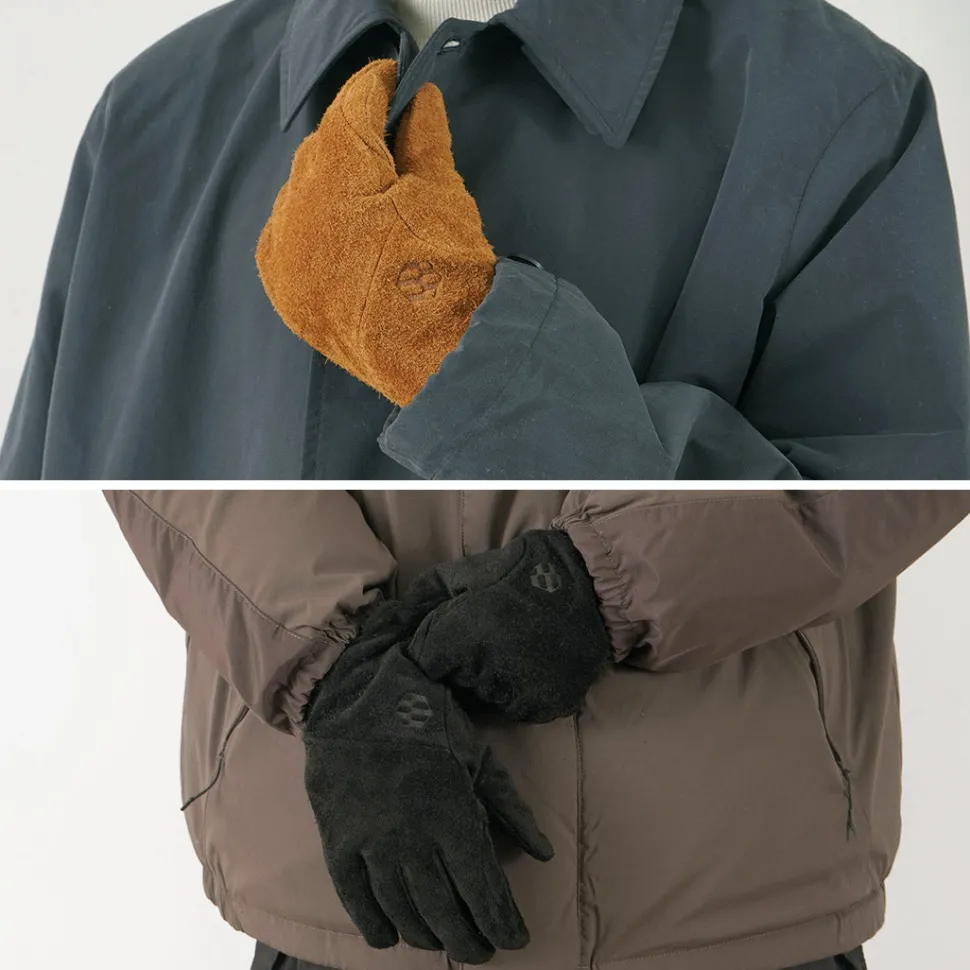The expressive suede leather is used and the inner lining is made of Polartec’s high-function fleece. The light and soft fleece does not interfere with the softness of the leather and provides higher warmth retention while retaining a luxurious feel.