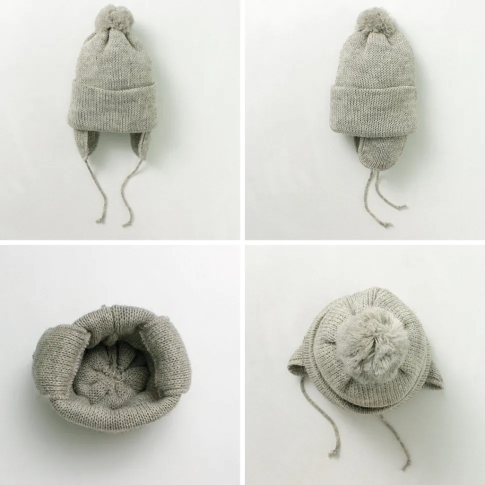 Slightly shallow silhouette that gently fits the head. The pom-poms and ear pads on the top add an accent to this simple knit hat. Just by wearing it, you can complete a trendy coordinate.