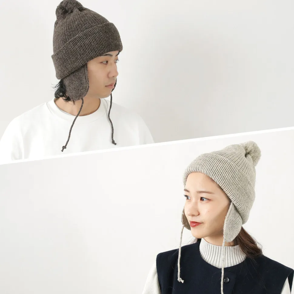 From HIGHLAND 2000, a long-established knitwear brand with over 100 years of history in the U.K., comes a trendy knit cap with ear pads and pompoms.
