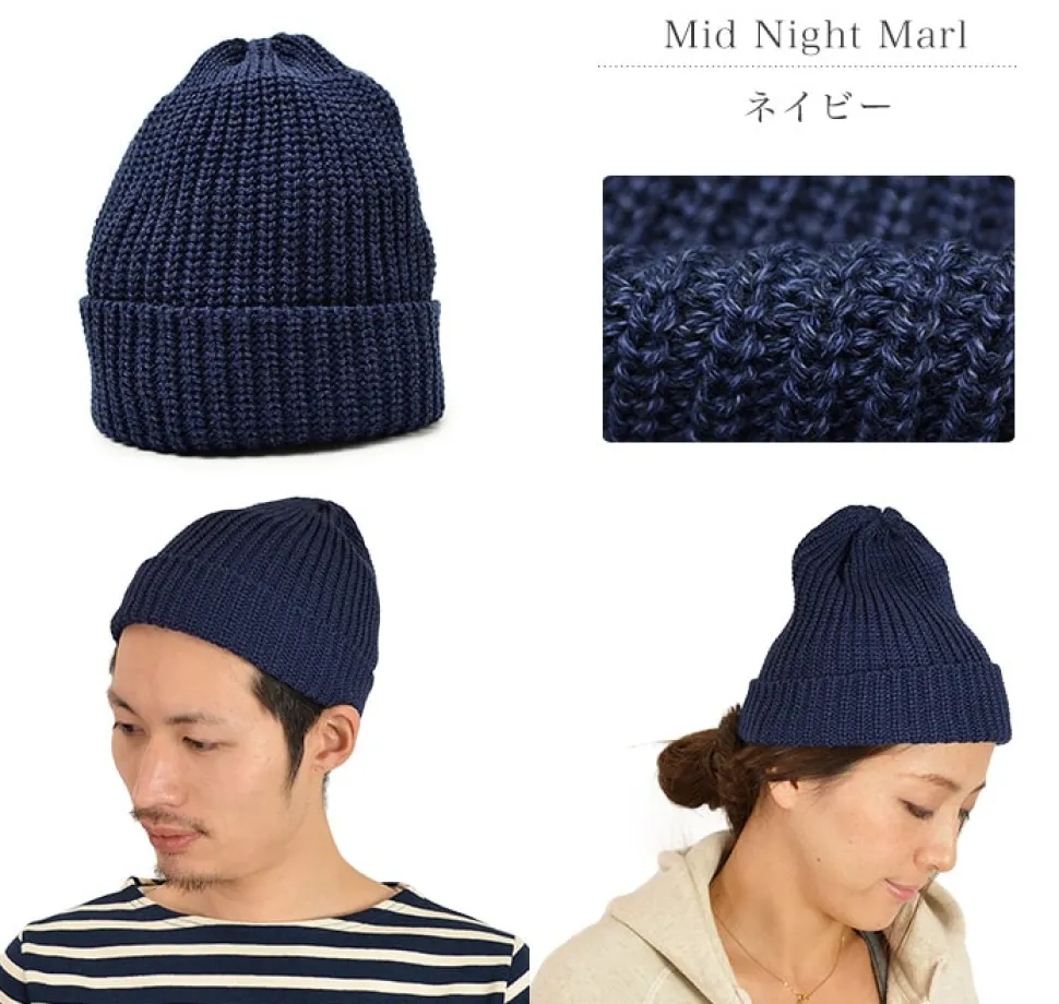 Soft and fluffy cotton wacky capThis deep cotton wacky cap is made with a hand frame (hand knitting machine). It is soft and comfortable to wear. Wool wacky caps are popular, but cotton material can be worn in any season, making it a very useful item. It is also recommended for those who don’t like the feel of wool material.HIGHLAND 2000’s standard “half cardigan” “Kata-ae” knitting, also known as royal rib, is different from rib knitting in that it is soft and voluminous with excellent elasticity. The fine stitches at the top of the head are different from the side stitches, and the comfortable fitting with moderate elasticity is gentle to wear.