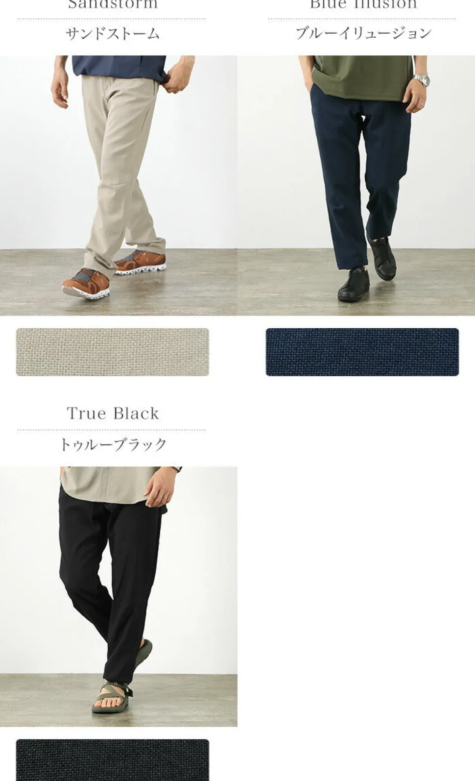 Highly functional pants that match any occasionThese relaxed pants have a clean, minimalist design. The greatest features are high quick-drying and elasticity. The use of polyester in the fabric makes them lightweight and durable. The soft texture is smooth and dry to the touch. The tapered silhouette tapers gently toward the hem for a sophisticated urban design. The regular fit is loose and comfortable without feeling constrictive. This is a pair that you will want to wear not only for mountaineering and climbing, but also for everyday lifestyle wear. The regular fit adopts a tapered silhouette that tapers toward the hem. The beautiful lines are not unlike those of an outdoor brand, and they go great with a shirt, jacket, or other clean styling.