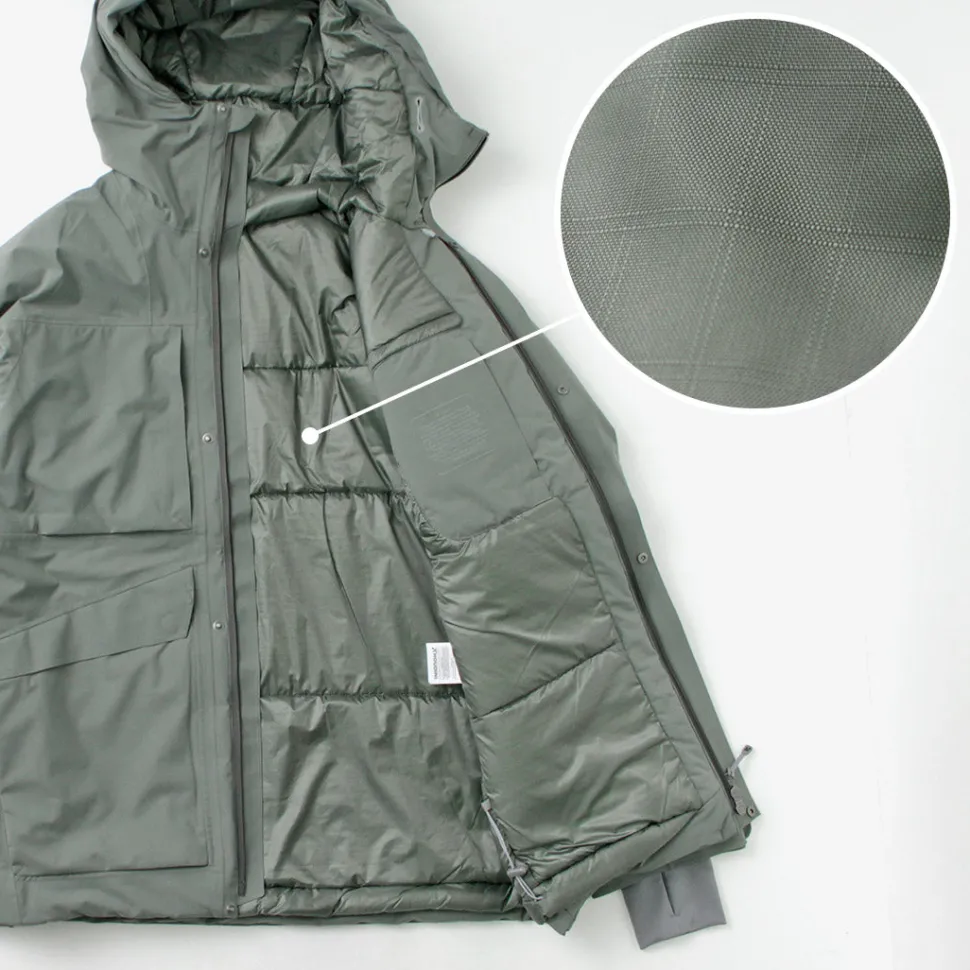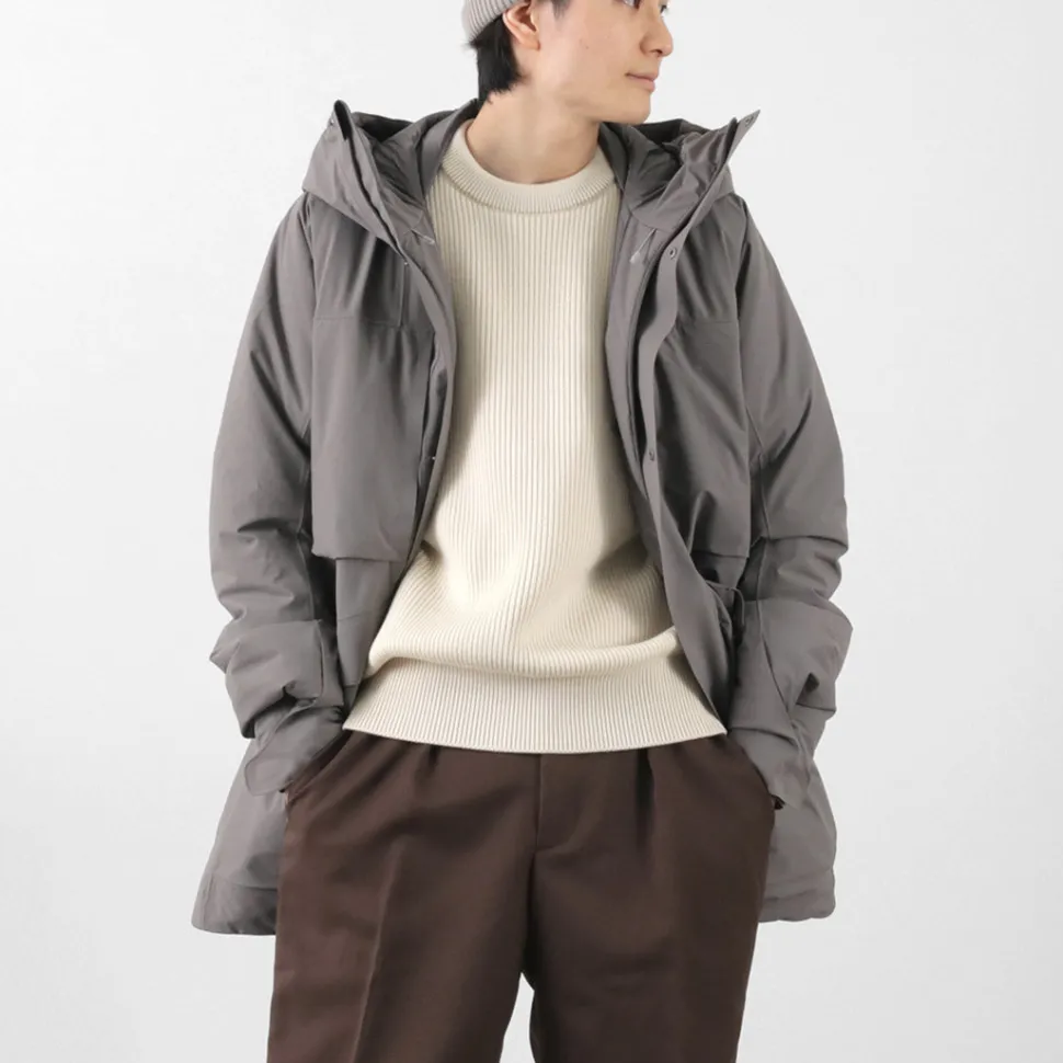 By zipping up the topmost part of the zipper, it securely covers up to the chin, providing excellent warmth. It also features drawcords on the hood, neckline, and hem for easy fit adjustment.