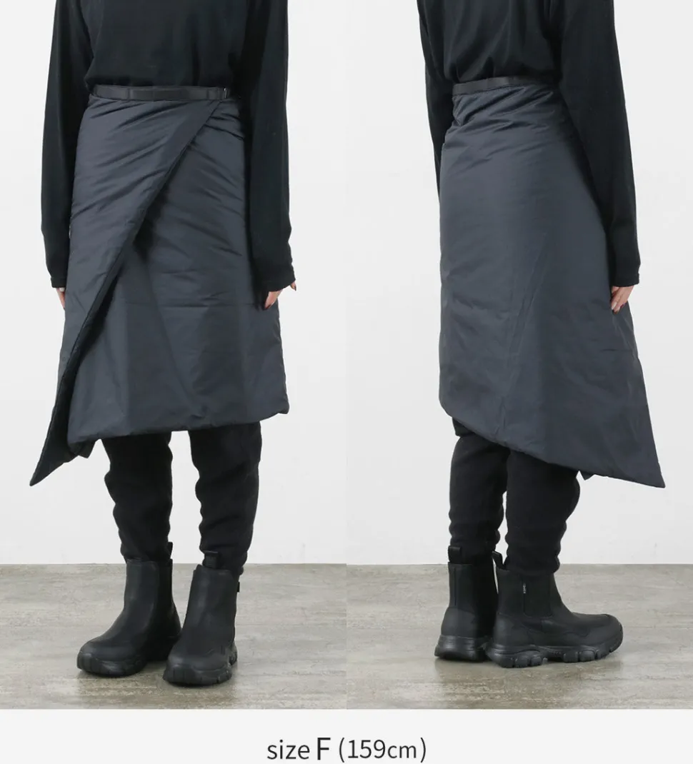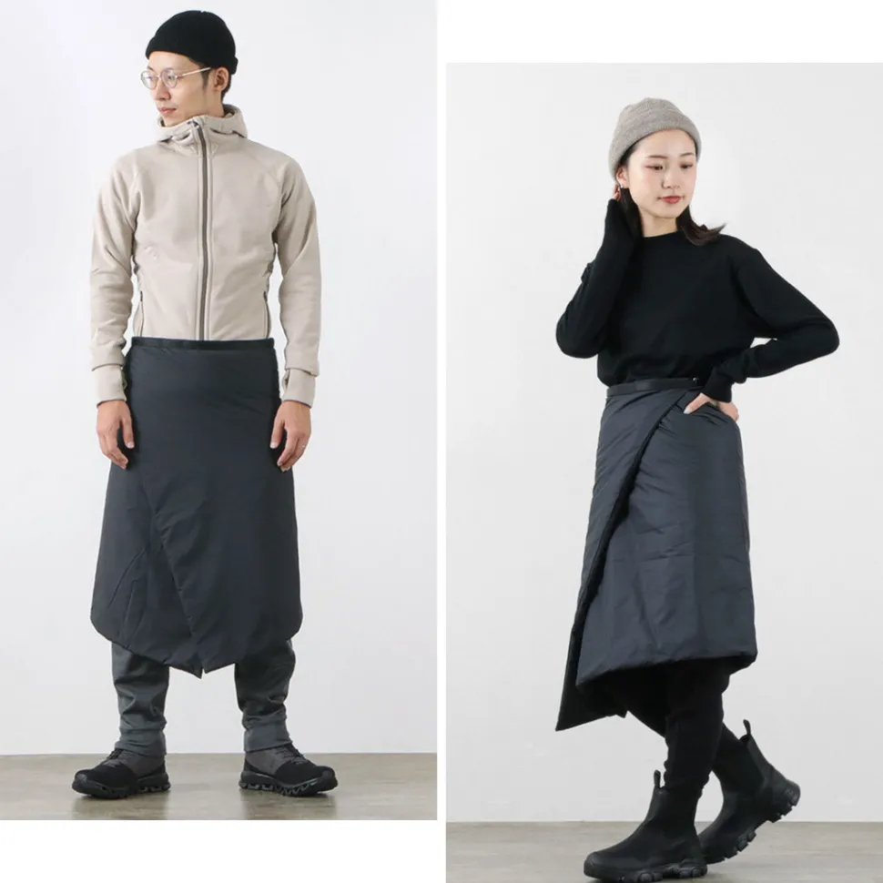 The Insulation Skirt has a high level of functionality that is unimaginable from its simple appearance. Its greatest appeal is its versatility, which allows it to be used in a number of ways. It can be used not only as a skirt, but also as a top or blanket.