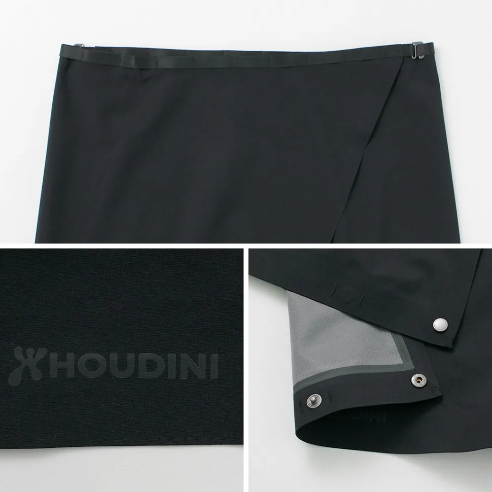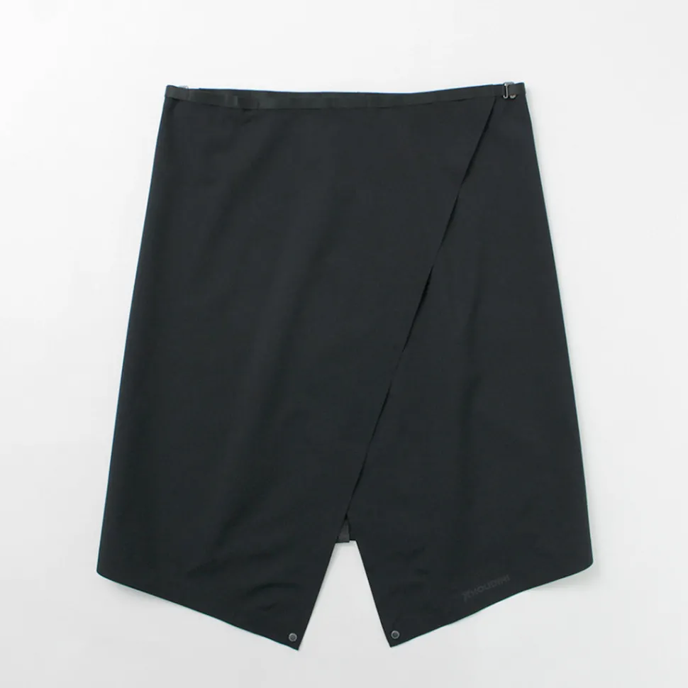 HOUDINI introduces the Waterproof Shell Skirt, a minimalist design concept that replaces rain pants. Although a lightweight item weighing approximately 250g, it is a waterproof and windproof 3-layer Loop Hardshell with 2-way stretch elasticity and high breathability.